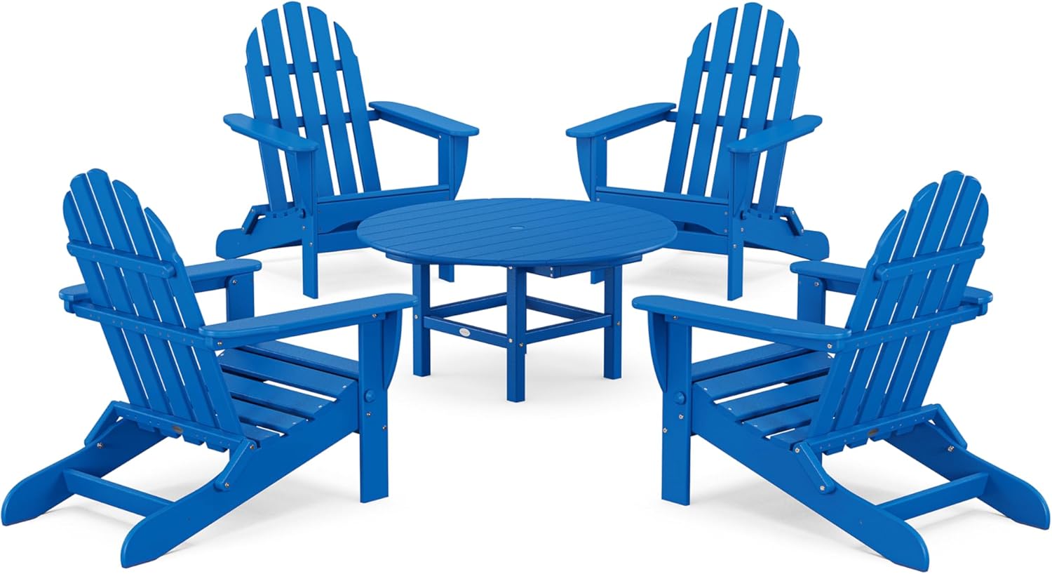 Great friends and good conversation — it doesn't get any better unless you're enjoying it all in the comfort and style of the POLYWOOD Classic Folding Adirondack 5-Piece Conversation Group. The Classic Folding Adirondacks fold flat for easy storage and transportation and the Round 38" Conversation table provides the perfect spot for drinks, snacks, or family game night.