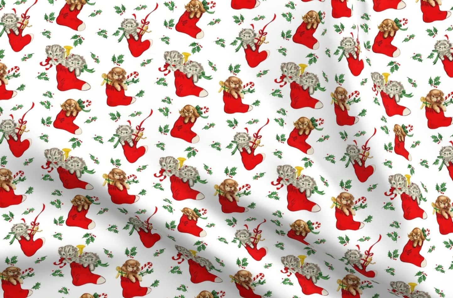 Spoonflower Fabric - Vintage Beige Sled Santa Traditional Bells Christmas Tree Treats Printed on Petal Signature Cotton Fabric by the Yard - Sewing Quilting Apparel Crafts Decor