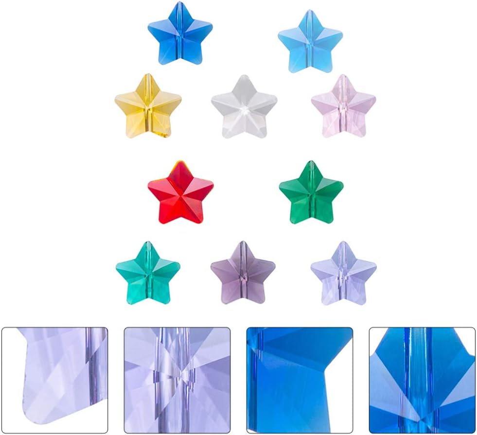 • : Mixed Colors Glass Star Loose Spacer Beads are made of material, with 14mm vertical hole, durable and hanging easily.