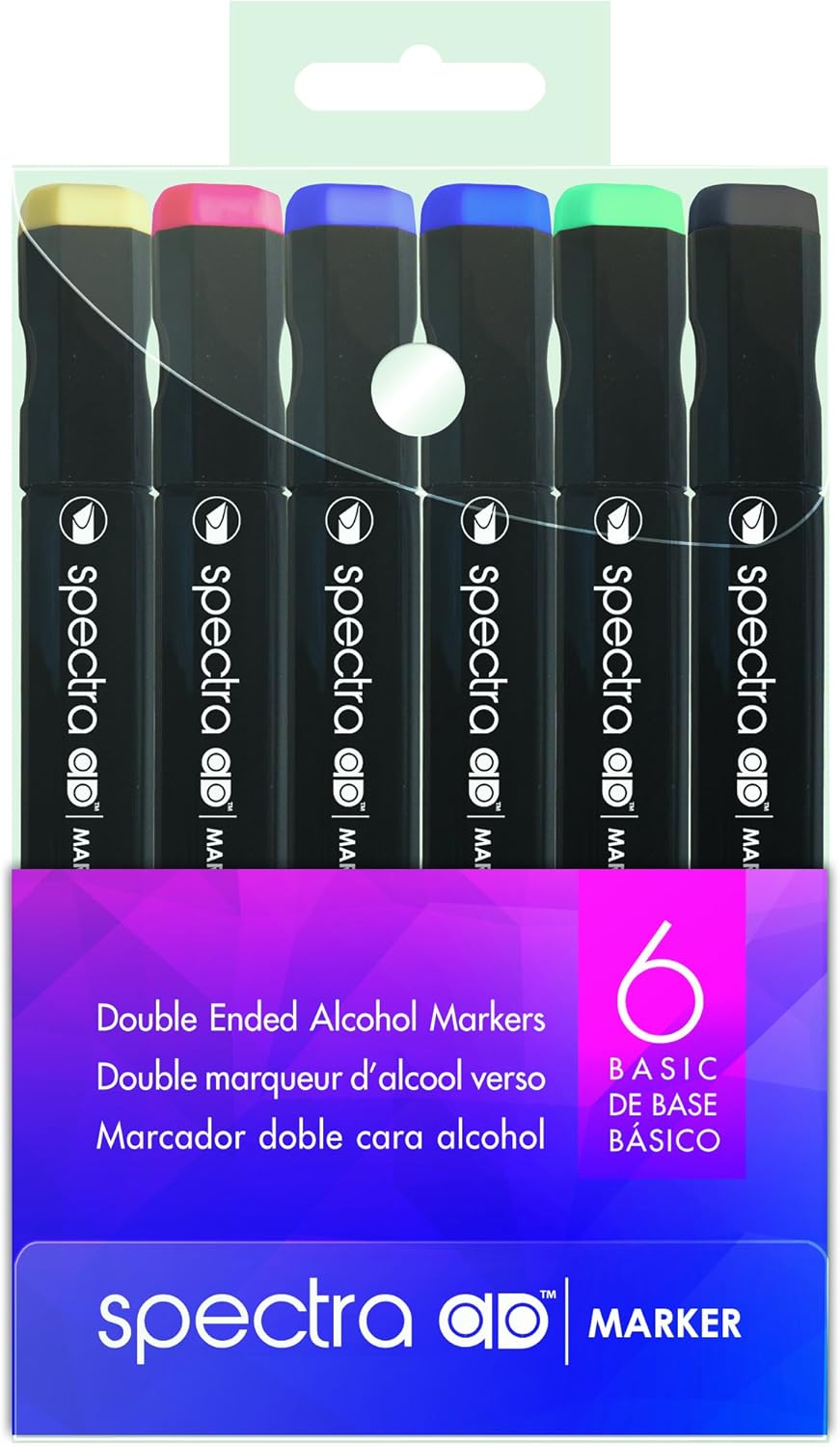 The Spectra AD Marker, Tri-Nib and Brush Dual-Tip, 6 Assorted Color Set contains low odor, alcohol-based markers and is ideal for art and design. This set contains markers in 6 brilliant red colors. The dual tip marker features a tri-nib with fine, medium and broad lines on one end and flexible brush nib on the other end. With fast drying, permanent and non-toxic color, these markers have a comfortable, ergonomically-shaped barrel that does not roll away. Use with Spectra AD Blender Marker (sold separately) to create gradations, to blend and to lighten color.