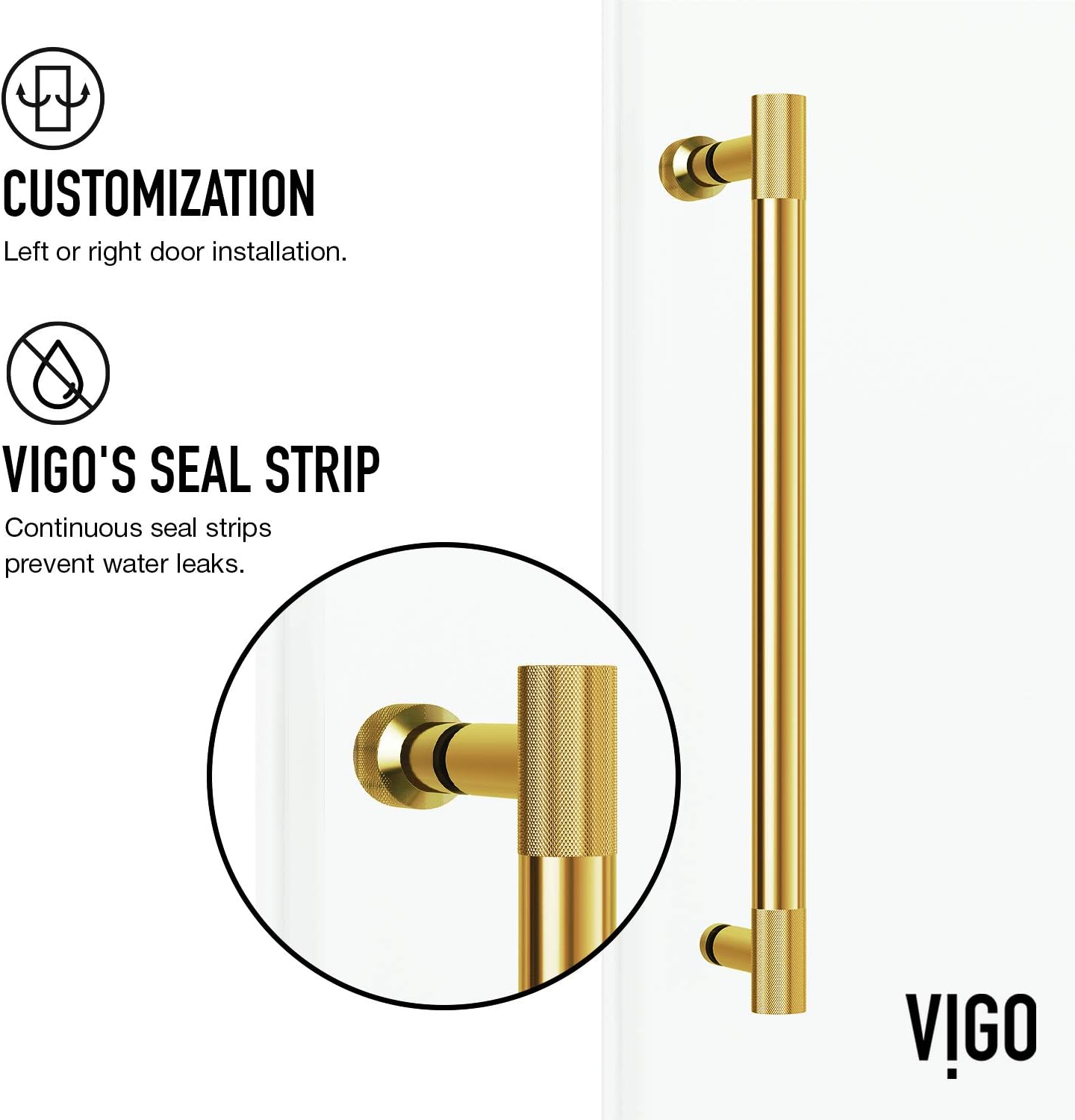 Experience a quieter, more relaxing shower experience with The Cass Collection. With sleek lines, concealed screws, plus elevated heights, The Cass Collection by VIGO is home to a striking shower door. Inspired by the power and silence of the wind, this frameless glass sliding shower door features sleek aerodynamic rollers that deliver smooth, air gliding open and closure. Rich finished hardware details add elegance to high- glass doors while the vertical door handle supports inviting walk-in shower entry. Choose between left or right-side opening for a custom installation. Innovative technology features ensure seamless, fast installation and a of use. Vigo Vg6044cl6076 Features: Covered under Vigo's limited and 1 year commercial Coordinates with products from the Cass line A frameless design gives a modern, sleek look to the shower Sliding shower door operation acts as a space saver for smaller bathrooms Door opens to the left or right depending upon installation configuration All hardware required for installation of shower door is included This is a shower door only - a shower base and walls may be required to complete unit NOTE: The biggest challenge in selecting the correct shower door is determining the finished opening width - be sure your desired opening measures between the "Enclosure Width Range" note below Vigo Vg6044cl6076 Specifications: Overall Height: 76" (bottom to top of door fixture) Overall Width: 60" (left to right of door fixture) Enclosure Width Range: 56" to 60" (range of enclosure sizes door will accommodate) Maximum Door Opening: 32" (assuming door is not trimmed) Opening Direction: Reversible Glass Thickness: 3/8"