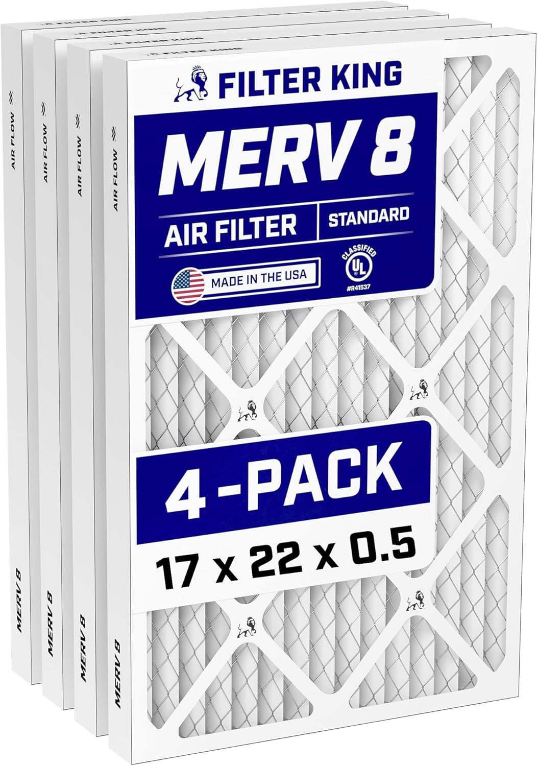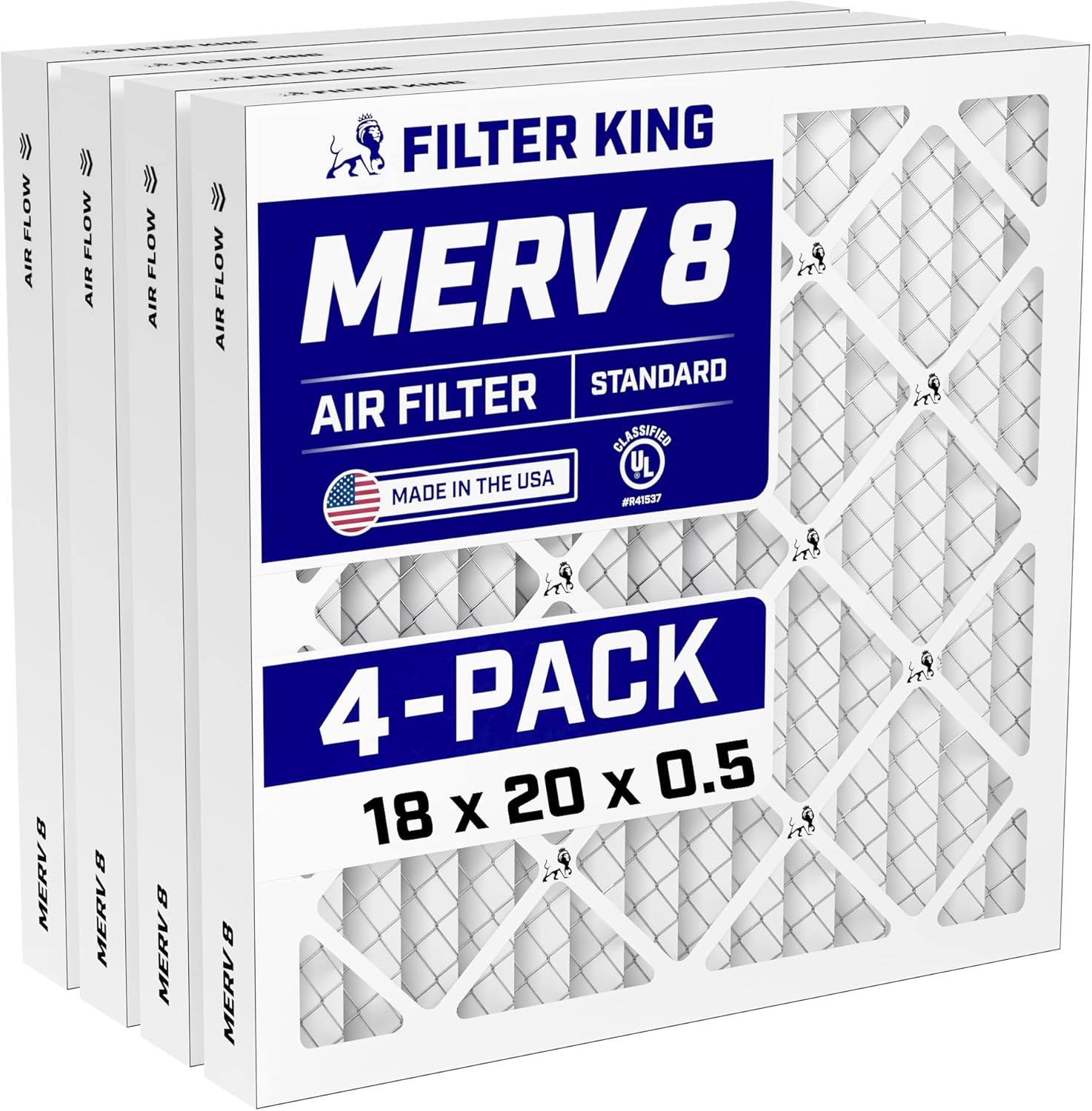 Filter King Merv 8 10x20x0.5 4-Pack Air Filter actual size is 9.5x19.5x0.5. Our 10x20x0.5 Furnace Filters are designed to last up to 90 days. These pleated 1-inch air filters are ideal for maintaining the efficiency of your heating and cooling systems. Make sure you measure your filter. The actual size of this pleated Merv 8 filter is 9-1/2 x 19-1/2 x 0-1/2