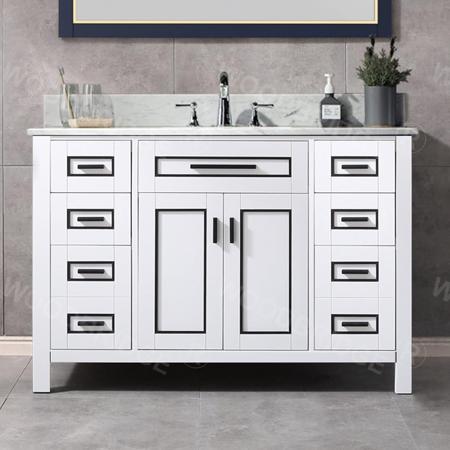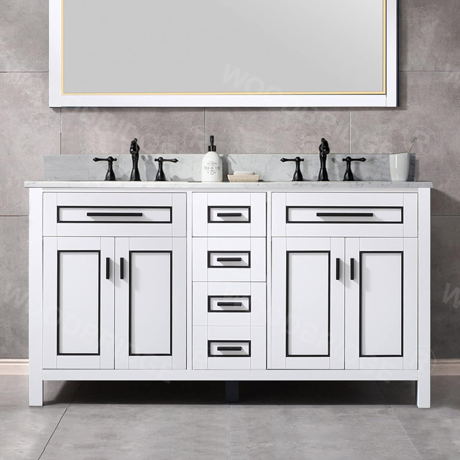 Millan 61 in. W x 22 in. D Bath Vanity in White with Engineered Marble Vanity top in Carrara White with White Basin with 8"cc Faucet holes