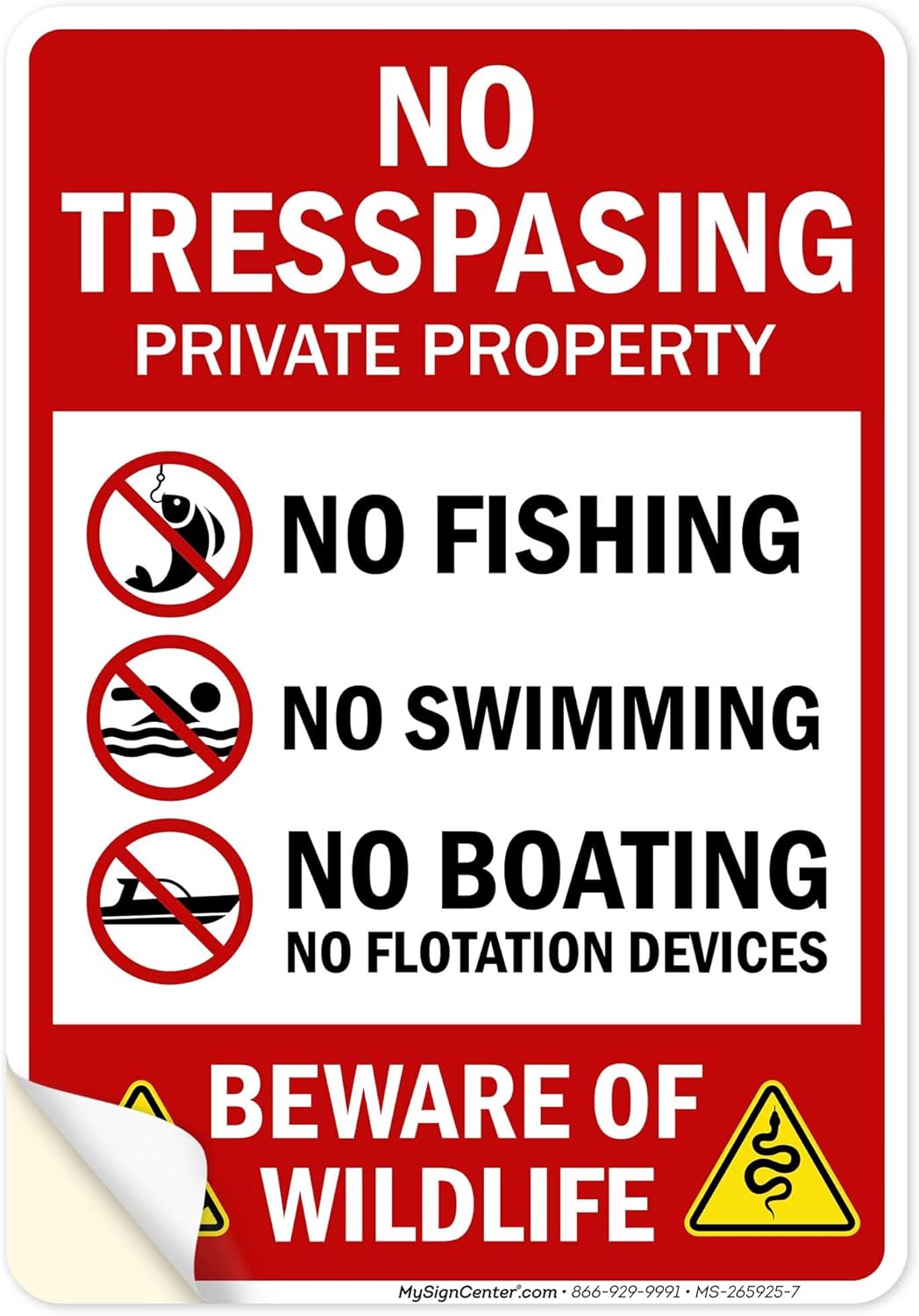 No Trespassing Private Property No Fishing No Swimming No Boating Beware Of Wildlife Sign, 12x18 Inches, Rust Free .063 Aluminum, Fade Resistant, Made in USA by My Sign Center