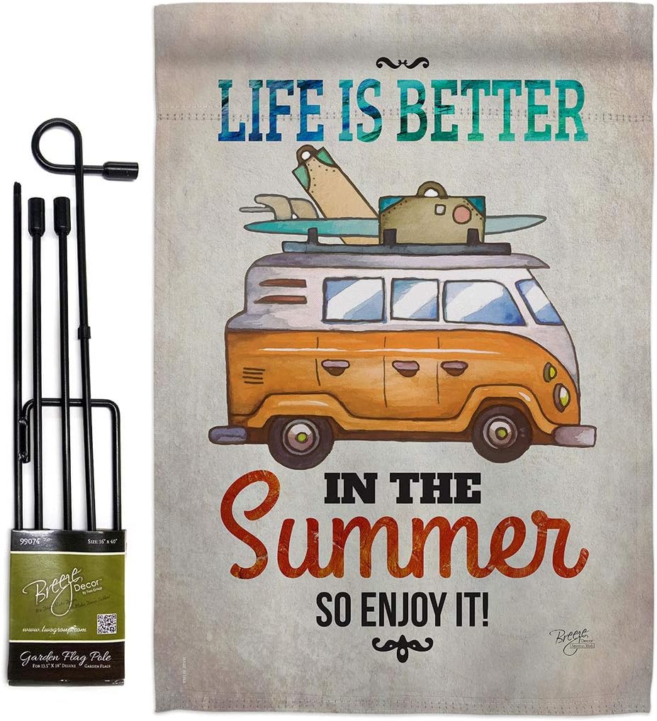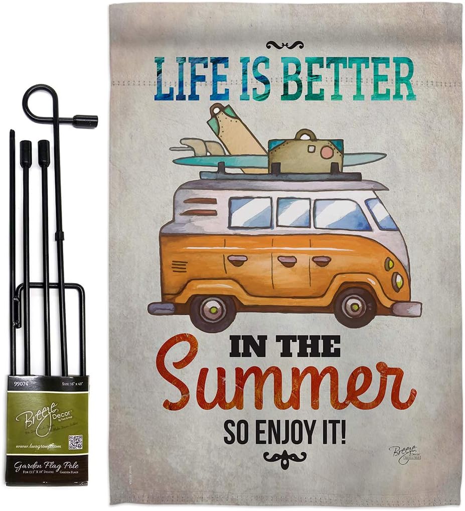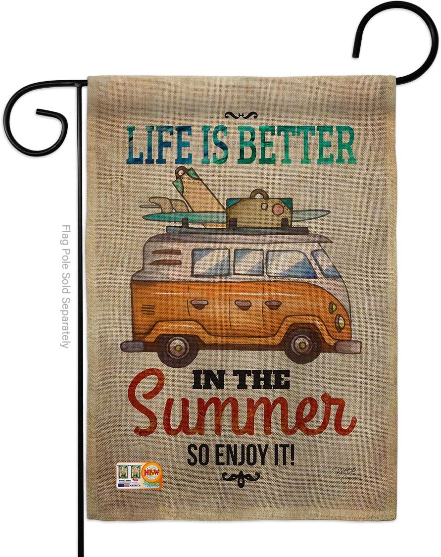 Fun In The Sun Beautiful Mini Garden Flag with Metal Garden Banner Pole Stand - Complete Set with Fansy Wall Bracket - 12" x 16" Power Coated Metal Flag HolderBreeze Decor have variety of Garden Flag Set for all occasions. Uniquely design for hanging indoor or outdoor use. We are committed to offering you exceptional values. Our customers enjoy displaying our Garden Flag Set for longer periods. Specification: Theme: Fun In The Sun Size: Garden Flag Set 13" x 18.5" Size: Metal Fansy Wall Bracket Print: Double-Sided Readable: Readable Both Sides Material: Weather Resistant 3 Layers Blockout Stitching: Double Stitched Display: Vertical Hang Type: Sleeve Artist: Schal Lee Special Features: Origin: Made In USAPackage Include: 1 pc x Mini Garden Flag 13" x 18.5" 1 pc x Metal Yard Banner HardwareFor more than a decade, we’ve been dedicated to manufacturing flags with no comparison in quality and beautiful designs. Our flags are made with our Pro Guard material that is soft to the touch and designs can be read correctly on the flag. A feature that our customers will love. We are committed to using eco-friendly inks that won’t leave a foot print in our environment. MPN: BD-SU-GS-106077-IP-BO-03-D-US16-BD 06077 56077