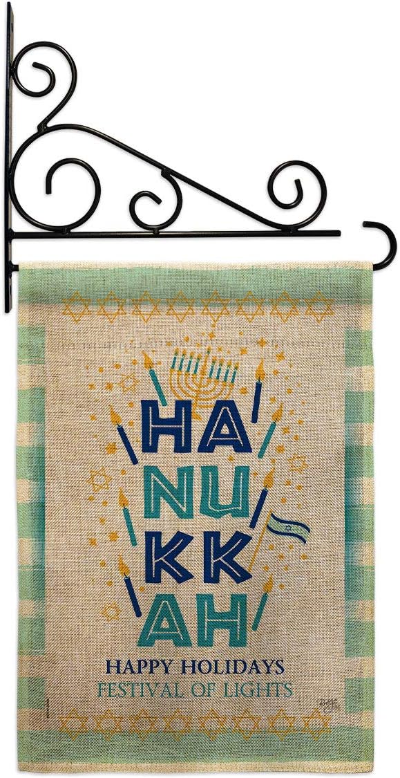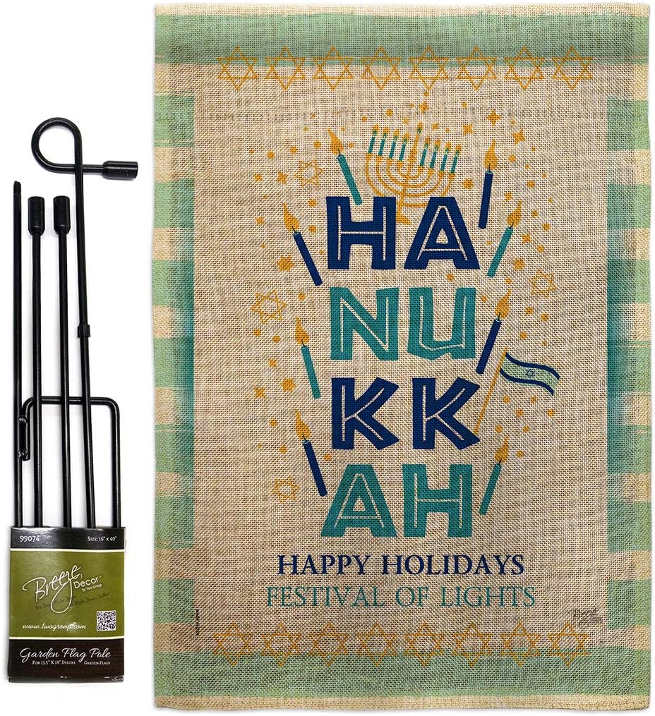 Hanukkah Beautiful Mini Garden Flag with Metal Garden Banner Pole Stand - Complete Set with Fansy Wall Bracket - 12" x 16" Power Coated Metal Flag HolderBreeze Decor have variety of Garden Flag Set for all occasions. Uniquely design for hanging indoor or outdoor use. We are committed to offering you exceptional values. Our customers enjoy displaying our Garden Flag Set for longer periods. Specification: Theme: Hanukkah Size: Garden Flag Set 13" x 18.5" Size: Metal Fansy Wall Bracket Print: Double-Sided Readable: Readable Single Side Material: Weather Resistant Polyester 300 D Stitching: Double Stitched Display: Vertical Hang Type: Sleeve Artist: Schal Lee Special Features: Origin: Made In USAPackage Include: 1 pc x Mini Garden Flag 13" x 18.5" 1 pc x Metal Yard Banner HardwareFor more than a decade, we’ve been dedicated to manufacturing flags with no comparison in quality and beautiful designs. Our flags are made with our Pro Guard material that is soft to the touch and designs can be read correctly on the flag. A feature that our customers will love. We are committed to using eco-friendly inks that won’t leave a foot print in our environment. MPN: BD-HK-GS-114229-IP-P3-03-S-US20-BD 14229 64229