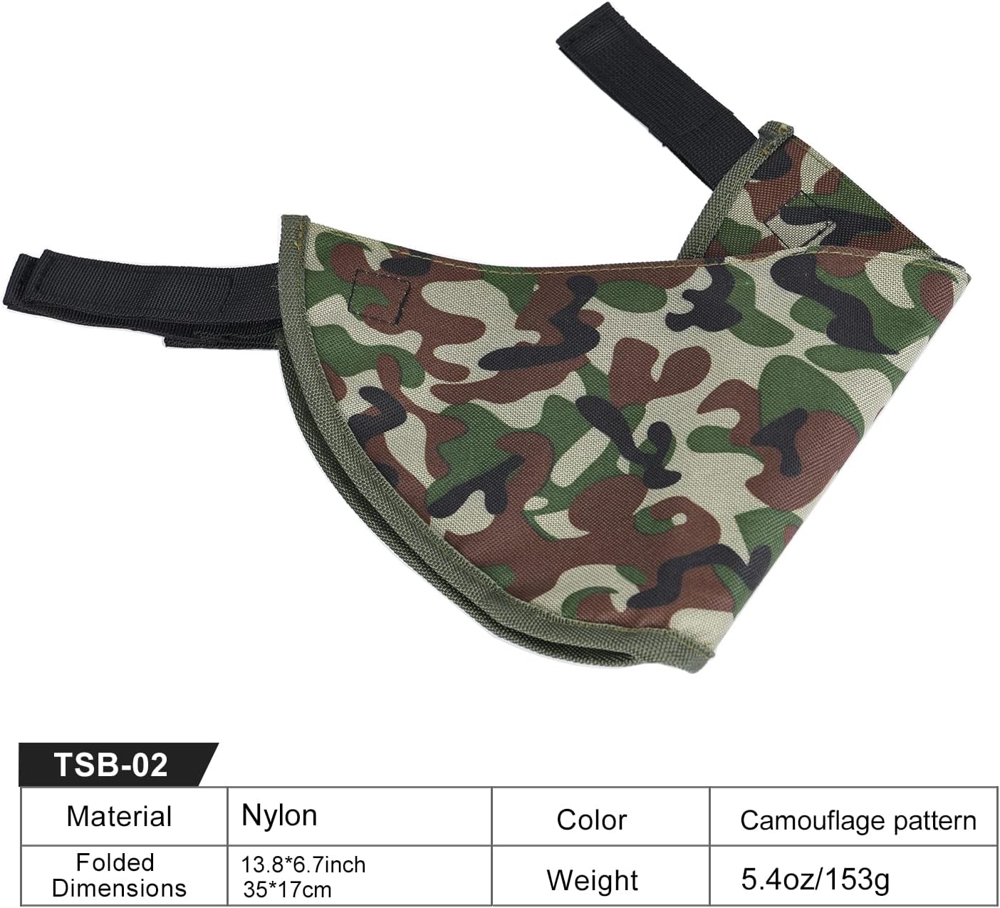 TSB-02 is one useful accessory to go with your tripod for stuff holding to further stabilize your tripod in windy conditions. Material: Nylon Color: Camouflagek Folded Dimensions:14*7*0.4 inch
