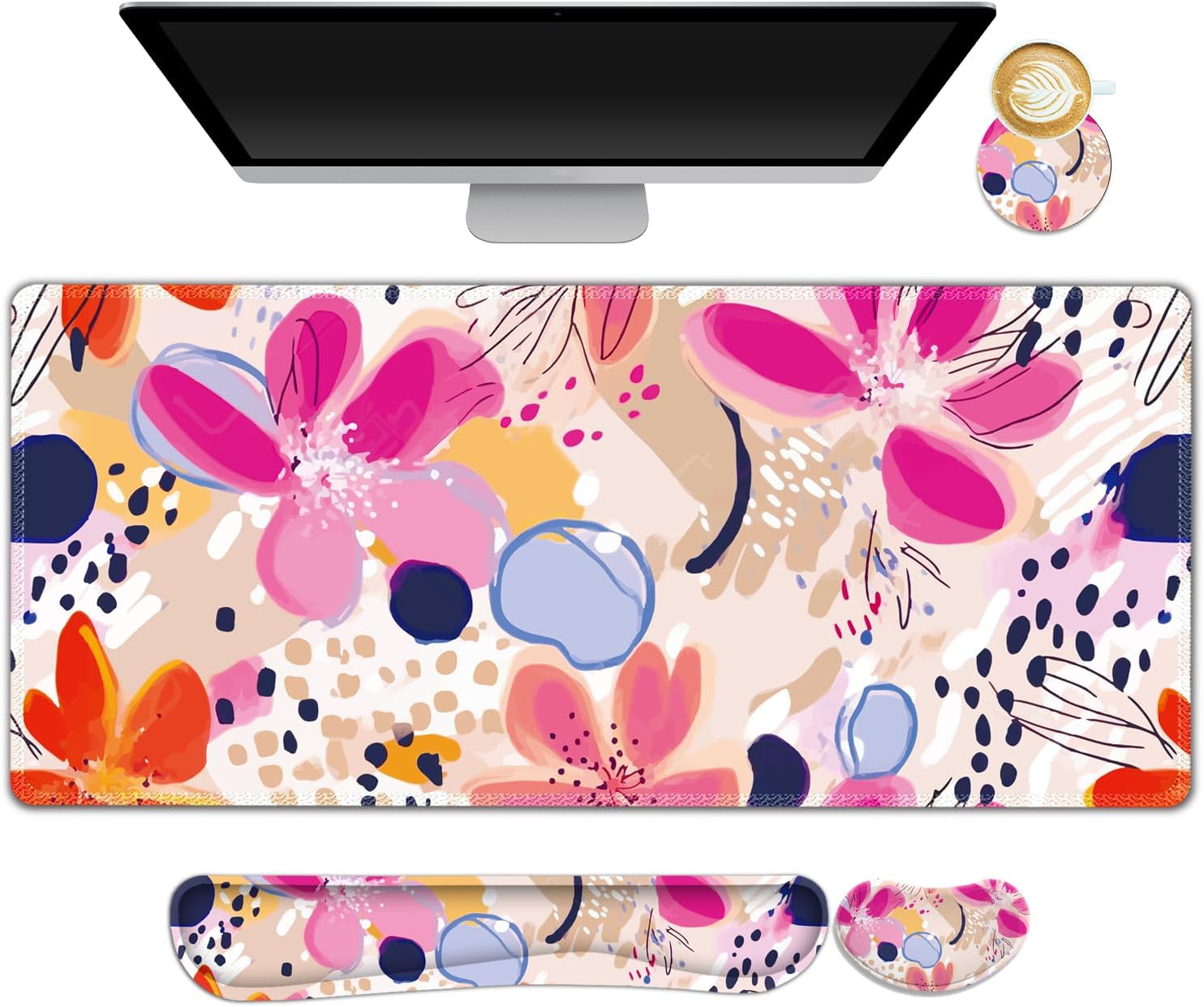 ArtSo : Art Print, So Beautiful The aim of the mouse pad set is: Relief from the stress disorder. It helps with problems associated with excessive use of the mouse or any other contraption that requires massive movement of the wrist, like carpel tunnel syndrome. Keeps wrists in neutral position. The product helps to perfectly align your wrists; it also supports them when you are not doing anything. Do you suffer from wrist sore or wrists would get red when using computer after a long time? Chose ArtSo mouse pad with wrist rest will give your everything in comfort you needed. The bottom work well keeping itself on the surface being used so it won't slide around while in use. Memory foam padding let’s your hands and wrists sink in soothingly and you can work or play computer game happily for hours or longer. Fatigue-free Typing Design reduced the strain on wrist, helps to avoid joint and wrist issues. Specifications: Wrist Filling Material: Memory form Package Included: 1x desk pad (35x15.5inch) 1x keyboard wrist rest(17.3x3.3inch) 1x mouse wrist rest(5.4x2.9inch) 1x cup coaster(3.9x3.9inch)Order ArtSo Mouse Wrist Pads today and say goodbye to uncomfortable and painful typing. Any questions, please feel free to contact ArtSo Direct, we will try our best to satisfy you.
