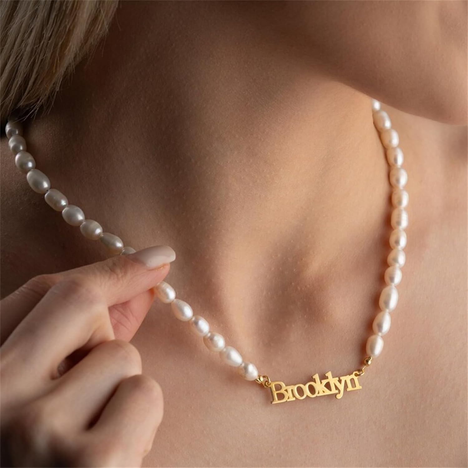 Timeless Elegance: Personalized Gold Name Necklace for Mother's DaySurprise your mom with a gift that speaks from the heart—our Dainty Pearl Chain Personalized Gold Name Necklace. This minimalist custom name necklace combines elegance and personalization, making it an ideal gift for Mother's Day or any special occasion. Crafted with a delicate pearl chain and a customizable gold nameplate, this piece captures the perfect balance of sophistication and sentiment. Whether it's a gothic name necklace or an old English name style, this necklace offers a unique touch that will be cherished forever.Why You’ll Love ItOur Personalized Gold Name Necklace is more than just jewelry—it's a heartfelt expression of love and appreciation. The dainty pearl chain adds a touch of elegance, while the customizable nameplate allows you to create a piece that's uniquely hers. Perfect for moms who appreciate both style and sentiment, this necklace is versatile enough to complement any wardrobe. Whether you're celebrating Mother's Day, a birthday, or simply want to show your love, this necklace is a romantic gift that will leave a lasting impression.Celebrate the special bond with your mom through our Personalized Gold Name Necklace. Order now to give a gift that combines timeless elegance with heartfelt sentiment!