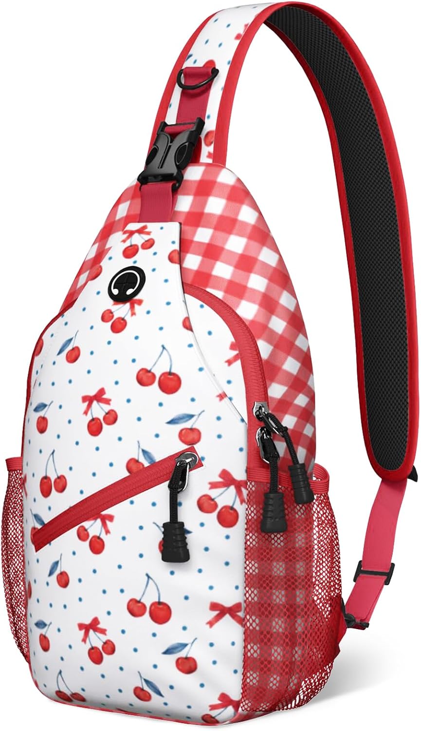 Red Strawberry Sling Bag Crossbody Chest Bag for Women Men, Water Resistant Lightweight Casual Crossbody Bag with Adjustable Strap, Travel Hiking Daypack Shoulder Backpack