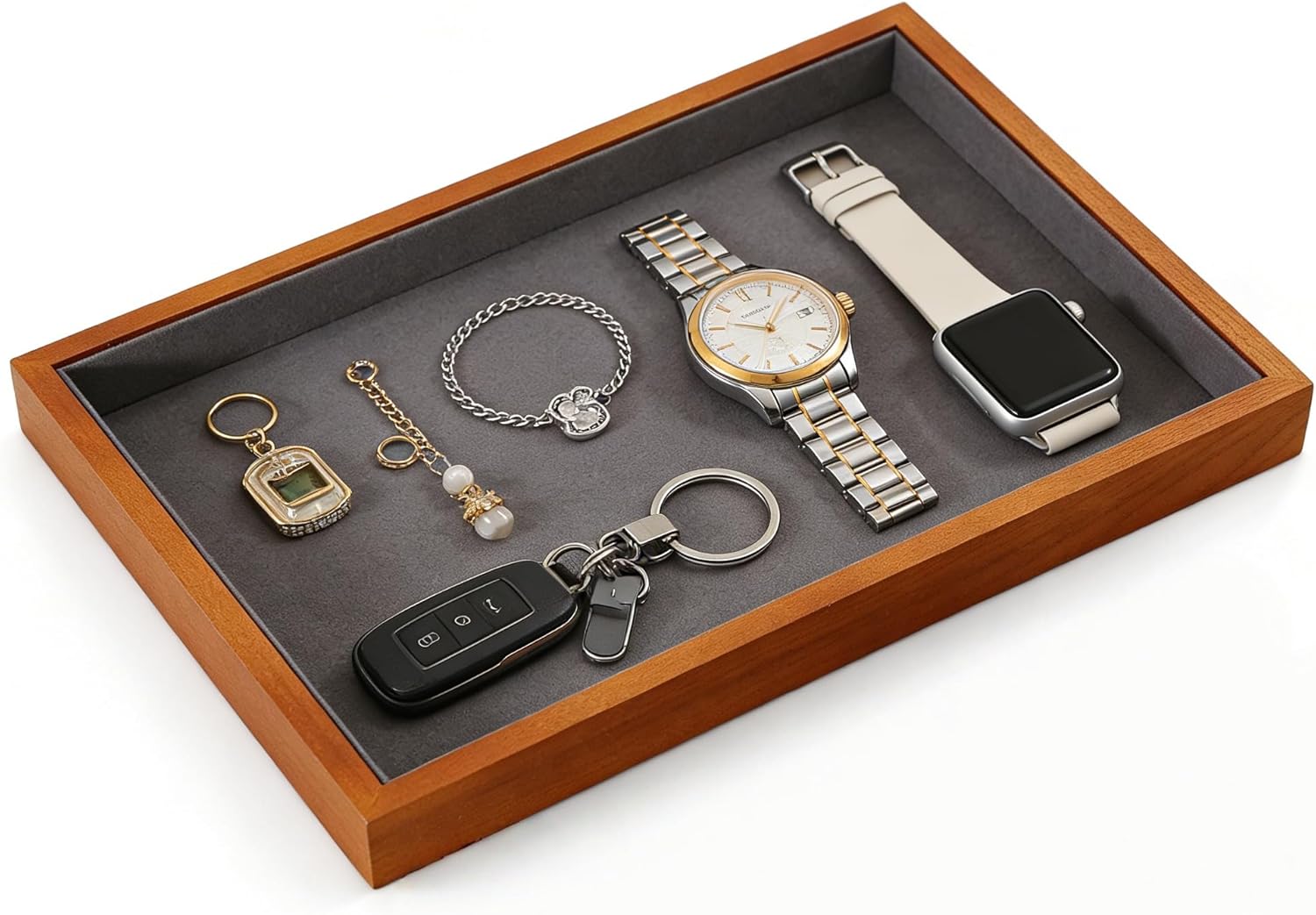 Protective Surface: Soft microfiber covering creates a scratch-proof surface, effectively preventing damage to your delicate jewelry, watches and small accessories. Crafted with thickened solid wood construction for long-lasting sturdiness, this tray offers reliable protection and durable use for daily storage and display