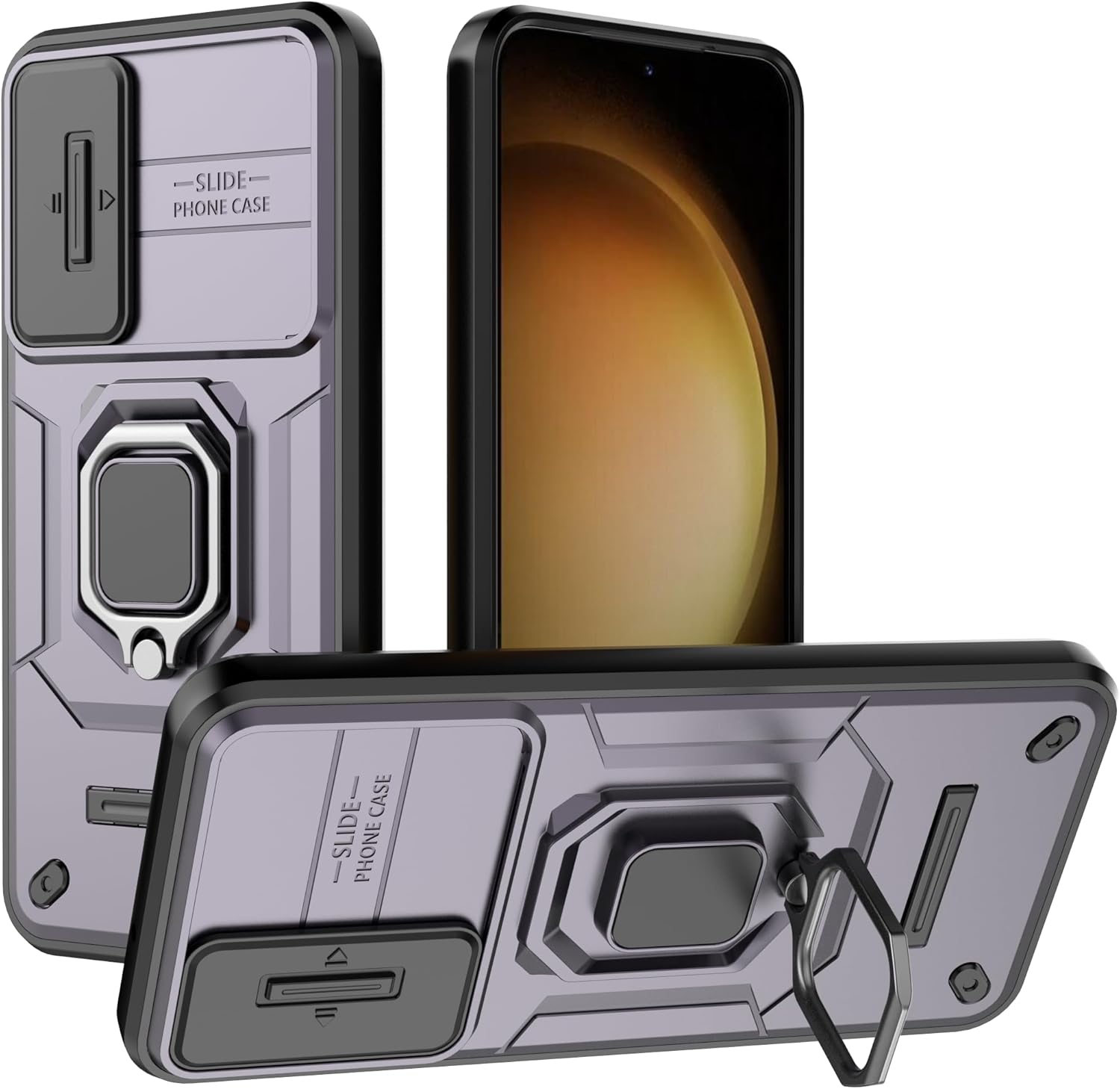 Mobile Phone Case for Samsung Galaxy S23 Support Car Holder Sliding Window Shockproof Protective Phone Cover for Samsung S23 Military Cases Lens Protection Purple