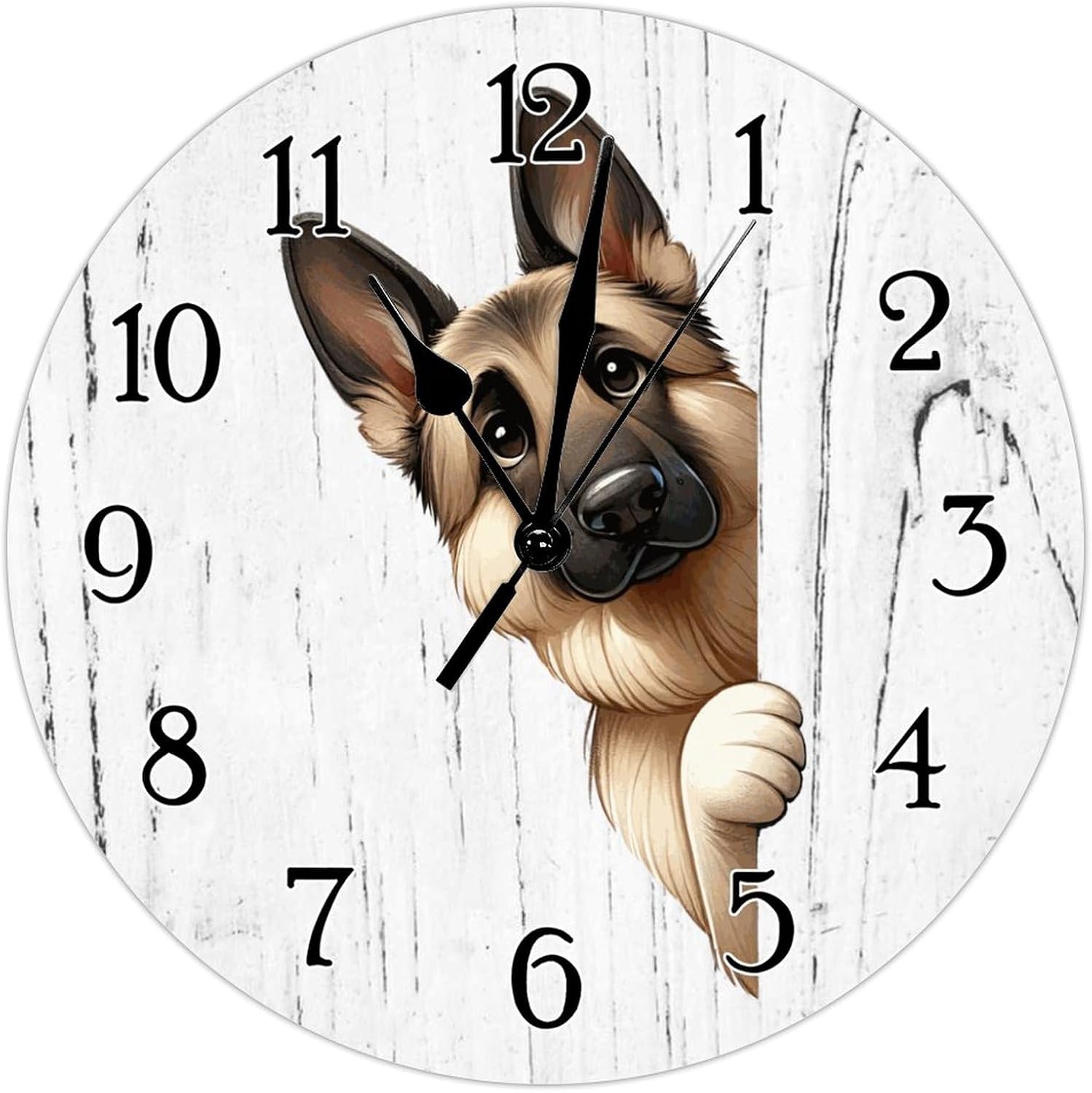 German Shepherd Dog Peeking Around Corner Clocks German Shepherd Wood Clocks Battery Operated Round Clock Dog Lover Gift Pet Hanging Wall Clock for Kitchen Bedroom Office 12x12in