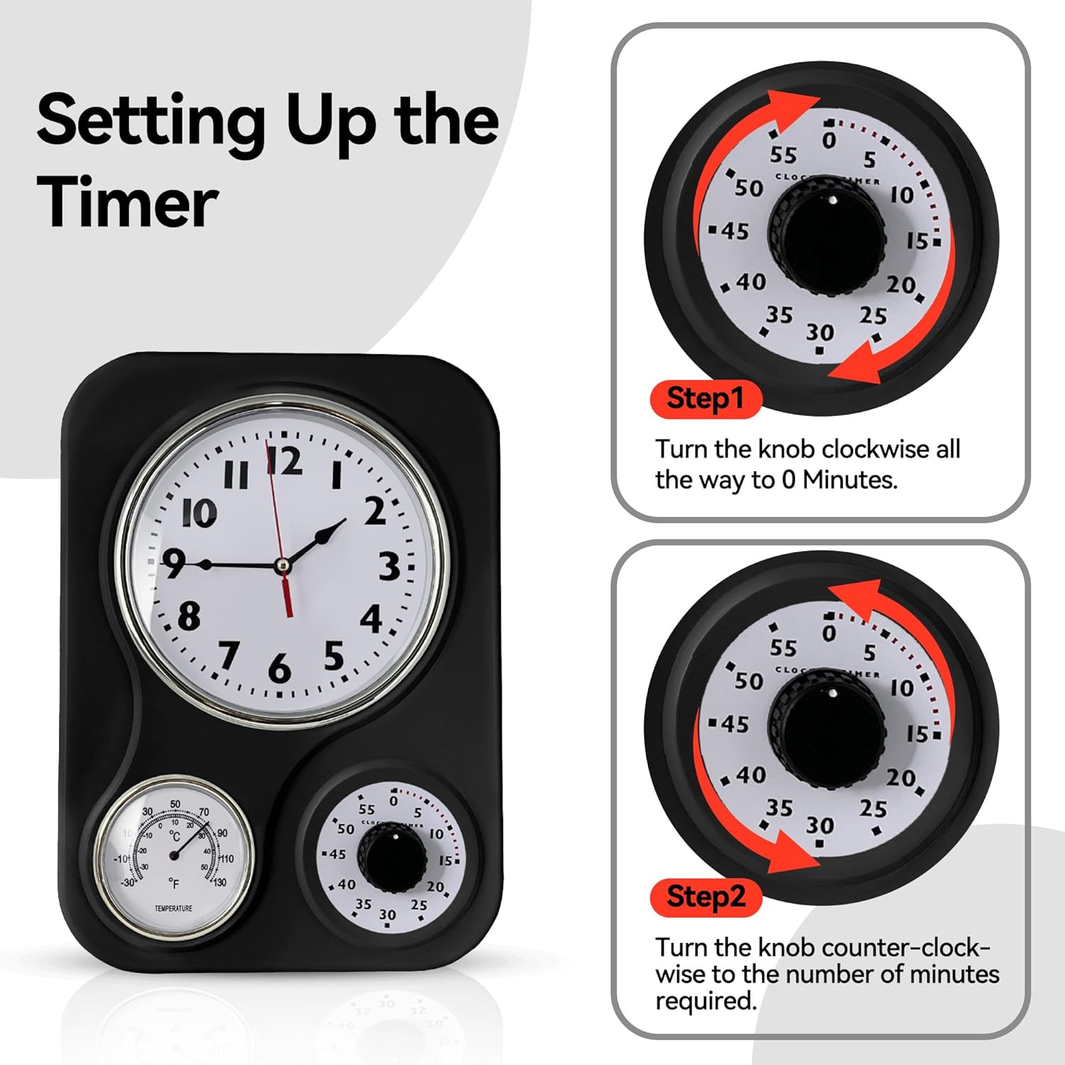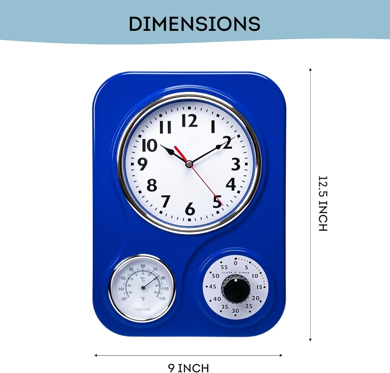 | Additional Features | Wall clock with a timer and thermometer |