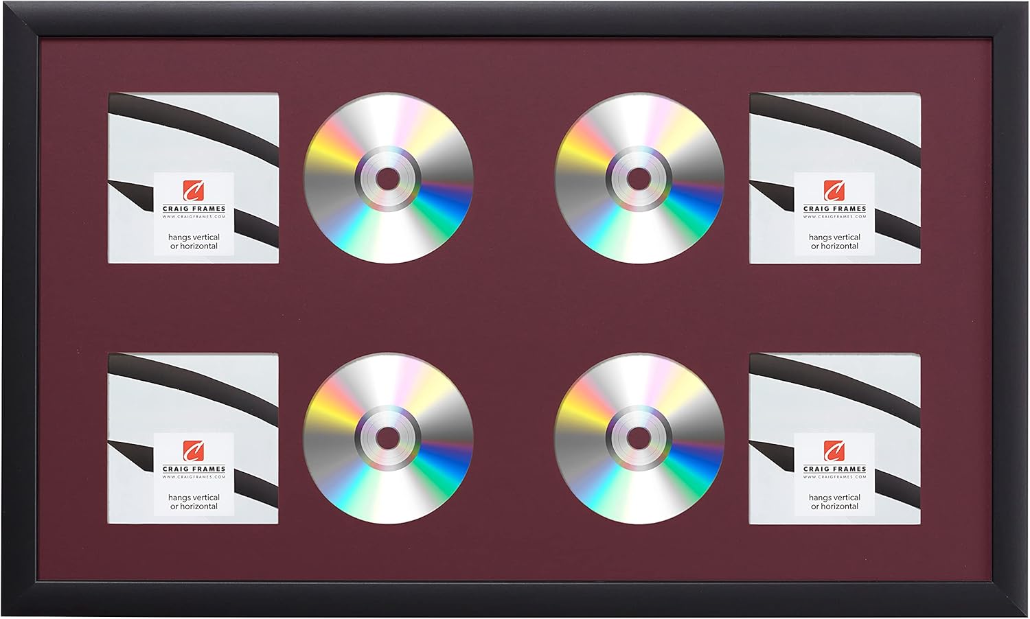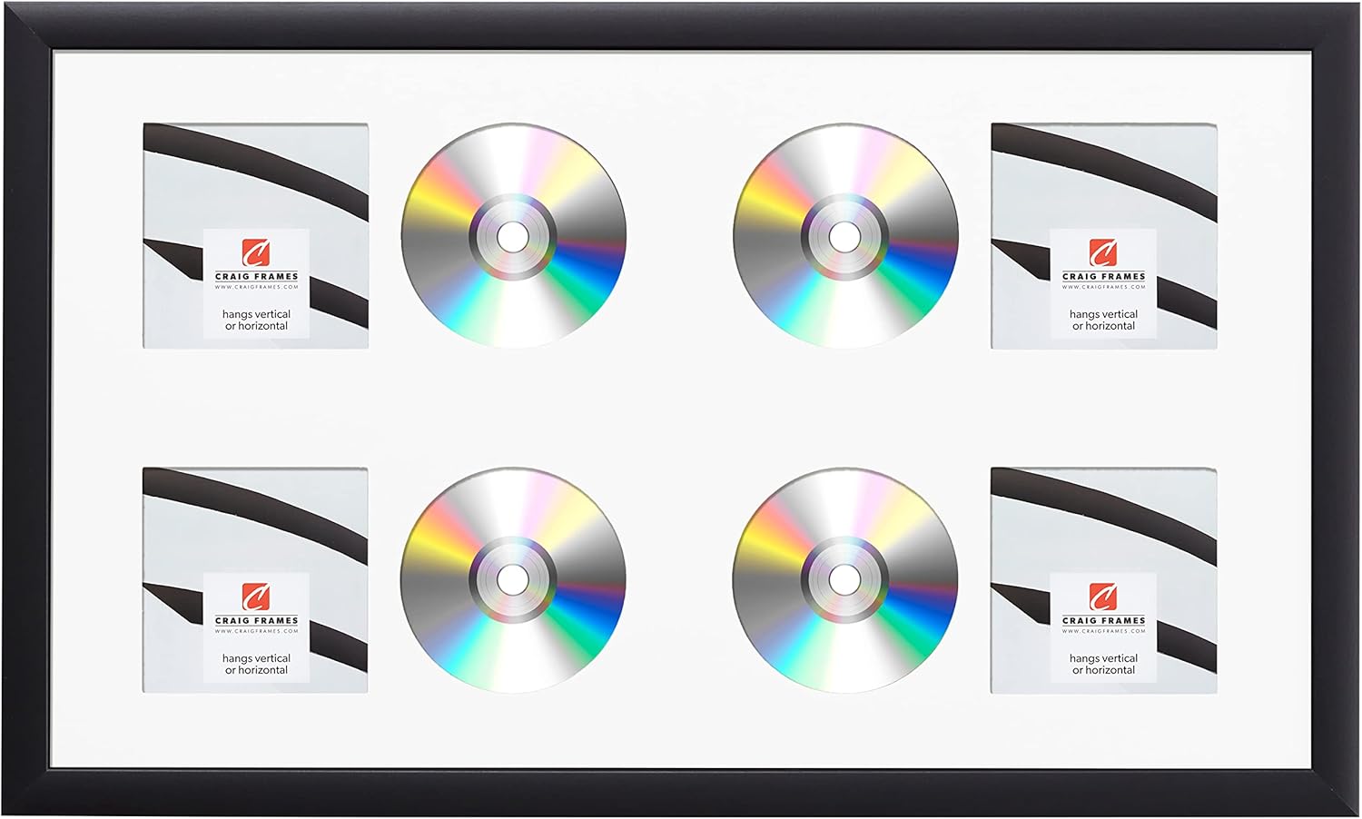 Display and protect your favorite CD's and cover art with our custom framed CD display mats. Our quality display mats are cut to securely hold standard size CD's and cover art booklets in place. The included black frame is built to hold the CD display matting, and comes complete with glass facing, rigid backing, and hanging hardware. (CD's and cover art shown are not included)