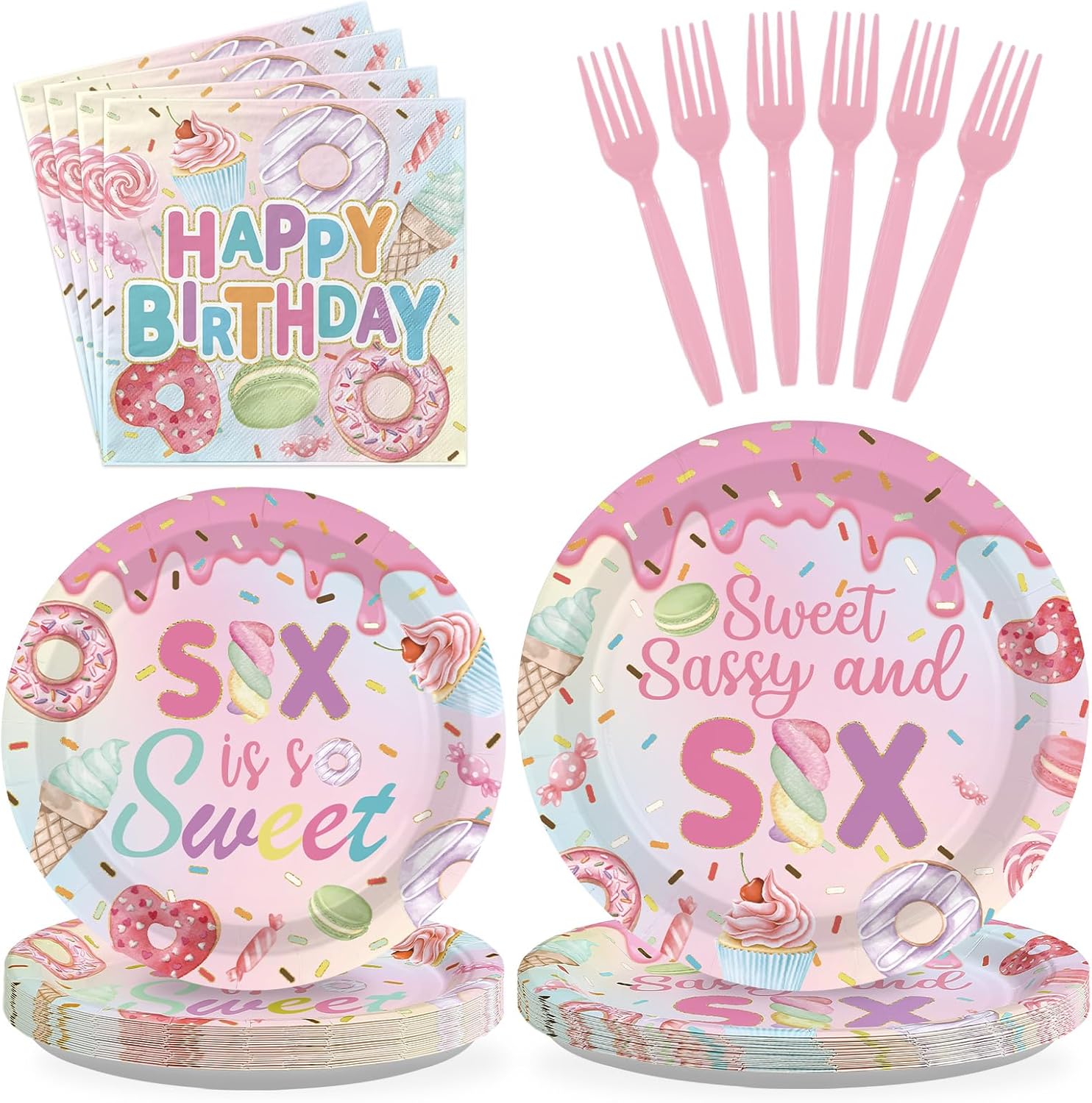 Greencian 96 Pcs Sweet Sassy and 8 Birthday Decorations Donut 8th Birthday Party Decorations for Girls Colorful Donut Plates and Napkins 8 Years Old Disposable Party Supplies Serves 24