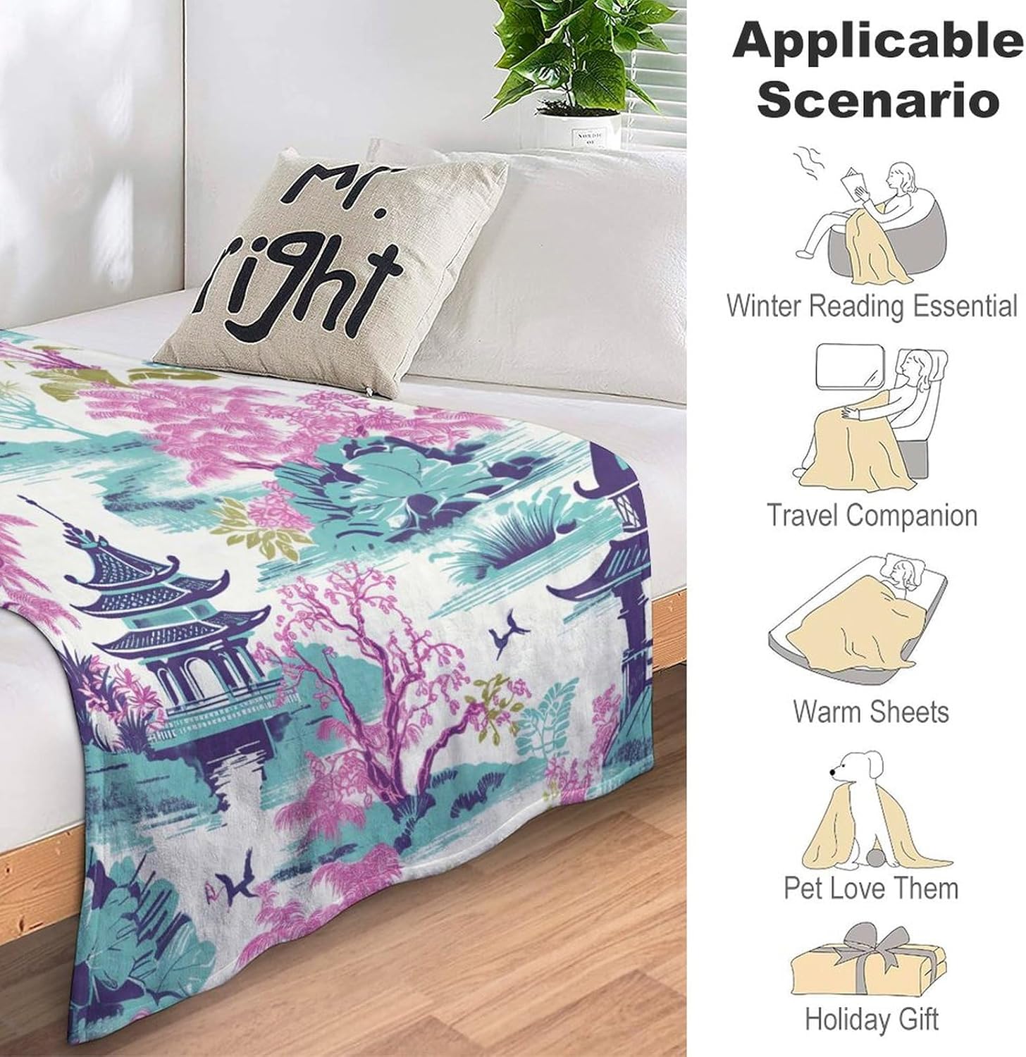 FEATURES- Single-sided printing, detailed high definition prints- Anti-pilling Coral Fleece , soft to touch, hypoallergenic- Easy to care, Machine wash on cold, tumble dry on low, No shrinkage, No colour fading- Can Be Folded Compactly, easy to carry- Personalized Customization:Support sending picture to us for a customization.Soft and Comfortable: When you get tired and go back home, use it to snore on the sofa and evenly fit . It will feel like you are embraced by your lover that will give you a deep sleep. Multi-Function: This premium throw is a very useful item to have on hand, it can protect your sofa/chair from dust and stain, keep you warm and cozy for a nap or movie time. Perfect size and weight to carry with for both indoor and outdoor activities, suitable in all seasons.Flannel throw blankets are decorative such as; couch, sofa, bed, farmhouse and home decor, travel blanket.Satisfactory Service: We always hope to bring better peoduct and service to every customer. If you are not completely satisfied with your purchase, please contact us. We will give you a satisfied answer, providing satisfactory service is our aim.