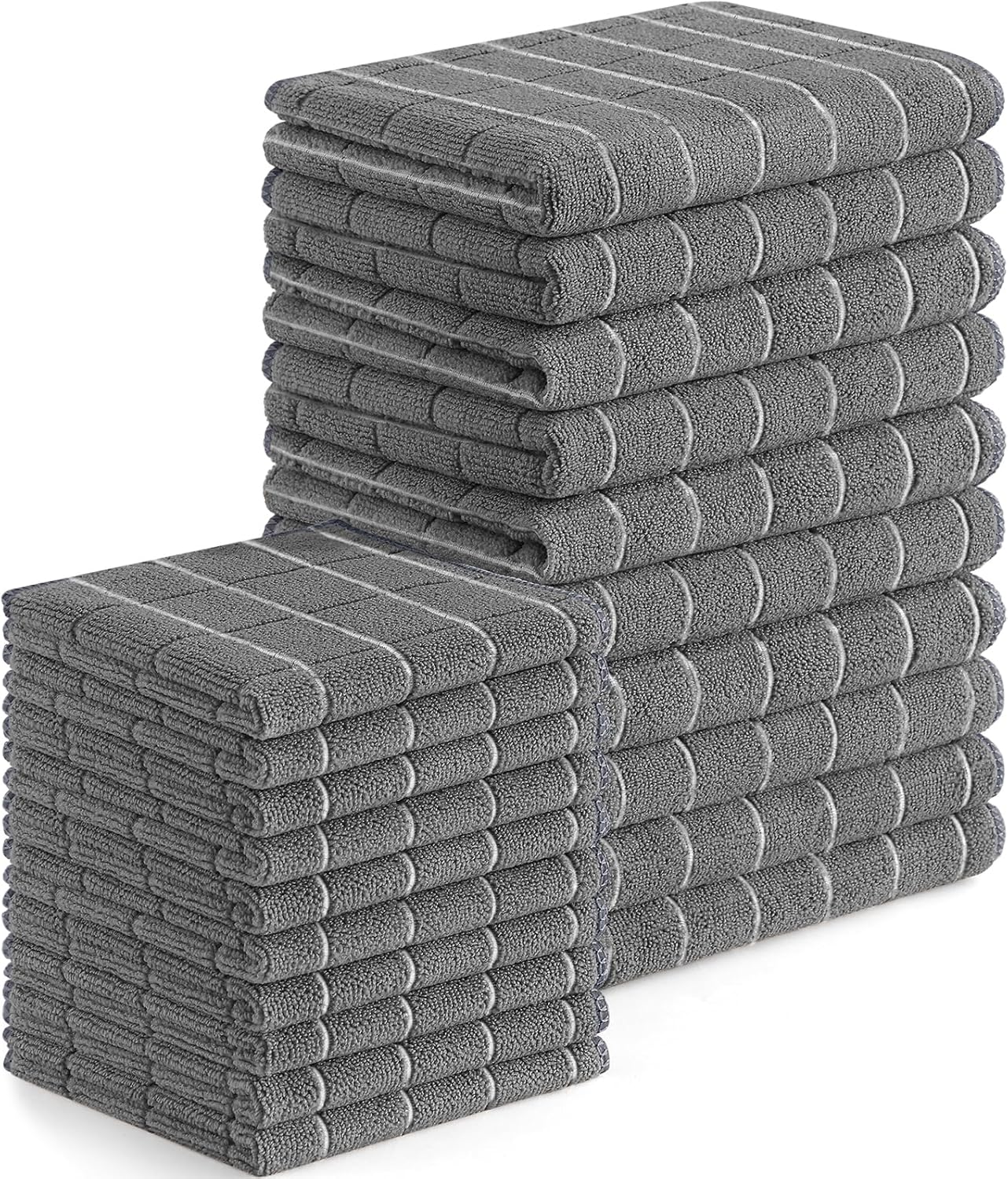 Homaxy Microfiber Kitchen Towels and Dishcloths Set, 16 Pack Soft and Absorbent Dish Hand Towels Bulk, 28 x 16 Inch & 12 x 12 Inch Quick Drying Rags for Washing Dishes, Grey