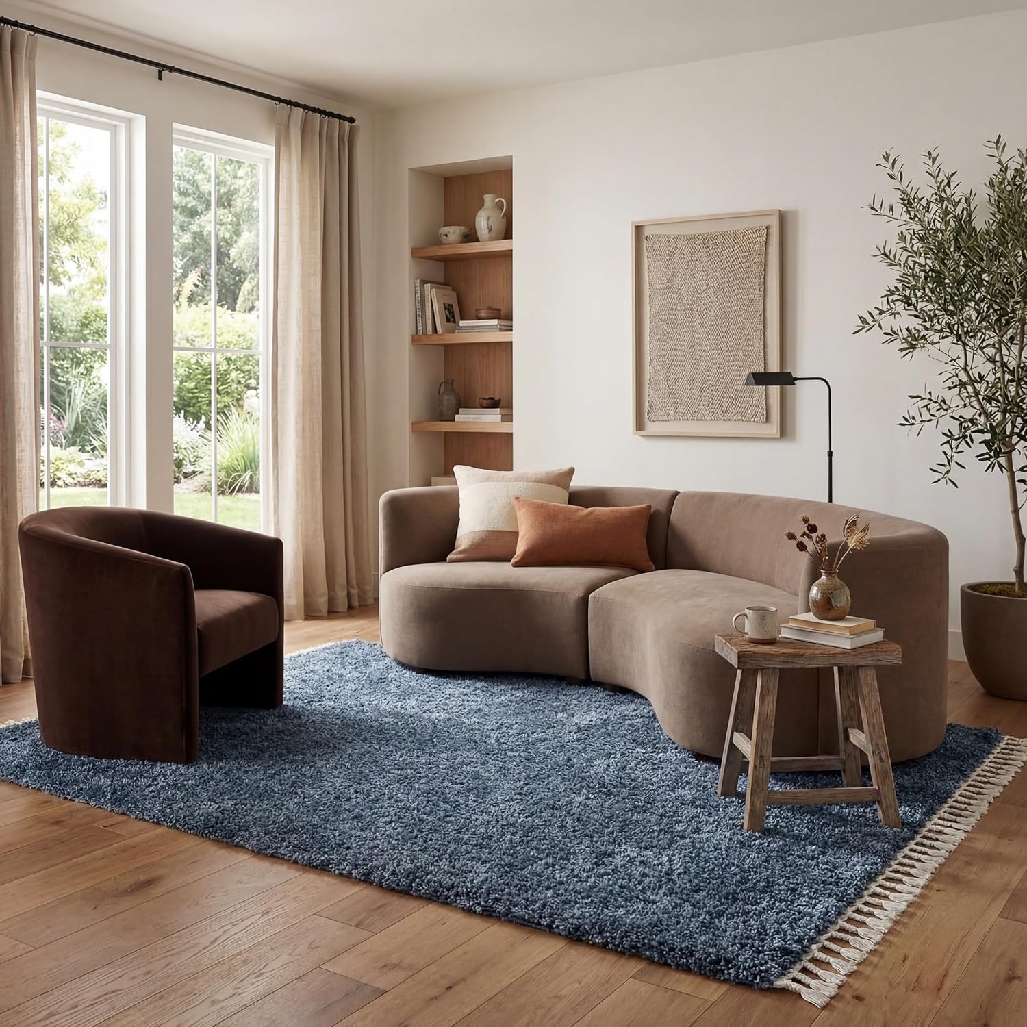 Create a cozy yet fashionable statement with our tasseled shag area rug. The plush pile feels luxurious underfoot and the braided tassels lining the ends add a bohemian feel. Place this floor covering in your bedroom, living room, or in any room that could use some warmth. Prized for their durability and ease of care, synthetic rugs are the perfect choice when spills and constant foot traffic are at the top of your mind. Kick back and relax with our easy to care for and pet-friendly area rugs.