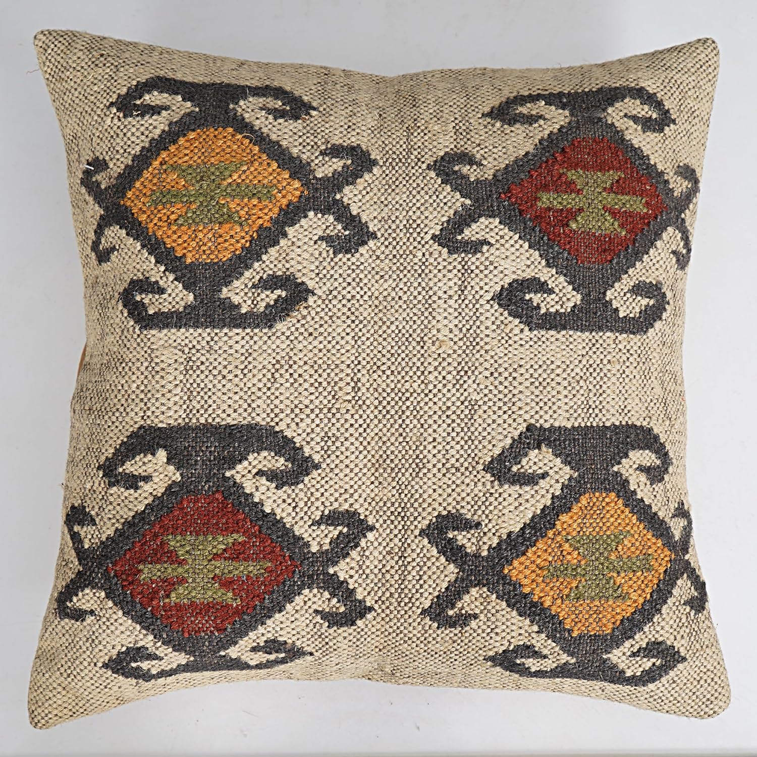 The Indian Handmade Jute Kilim Cushion Cover Is the Perfect Solution for Adding Boho Charm to Your Home Decor. Handcrafted with Natural Jute Fibers, This 18x18-Inch Pillow Cover Embodies Quality and Durability. It Showcases Intricate Kilim Patterns, Reflecting the Rich Indian Craftsmanship. Made in India, This Cushion Cover Ensures Authenticity. The Eco-Friendly Jute Material Provides Natural Insulation and Breathability, Making It Suitable for All Seasons and Ideal for Eco-Conscious Individuals. the Zipper Closure Allows Easy Insertion and Removal of Pillows, While the Easy Maintenance Ensures Long-Lasting Beauty. Whether You Want to Enhance Your Living Space or Offer a Meaningful Gift, These Jute Kilim Cushion Covers Are the Perfect Choice. The Indian Handmade Jute Kilim Cushion Cover Is Intended to Be Used for Home Decoration, Adding a Boho Chic Vibe to Living Rooms, Bedrooms, and Other Areas in Need of a Stylish Upgrade. B ,oho Chic Indian Handmade Jute Kilim Cushion Cover - Enhance Your Home Decor with Natural Fibers,