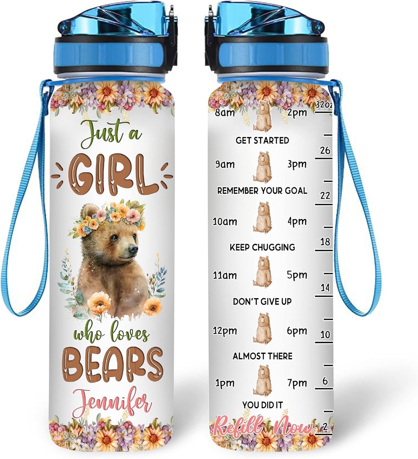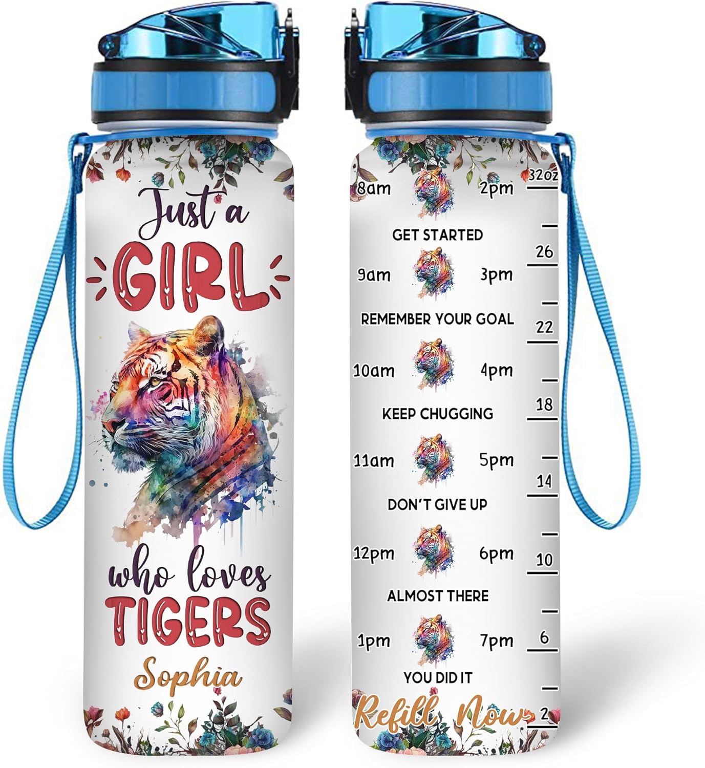 Hyturtle Personalized Dragon Lovers 32 Oz 1Liter Motivational Water Bottle With Time Marker, Just A Girl Who Loves Dragons, Animal Lovers Gifts For Women, Girl On Birthday, Christmas