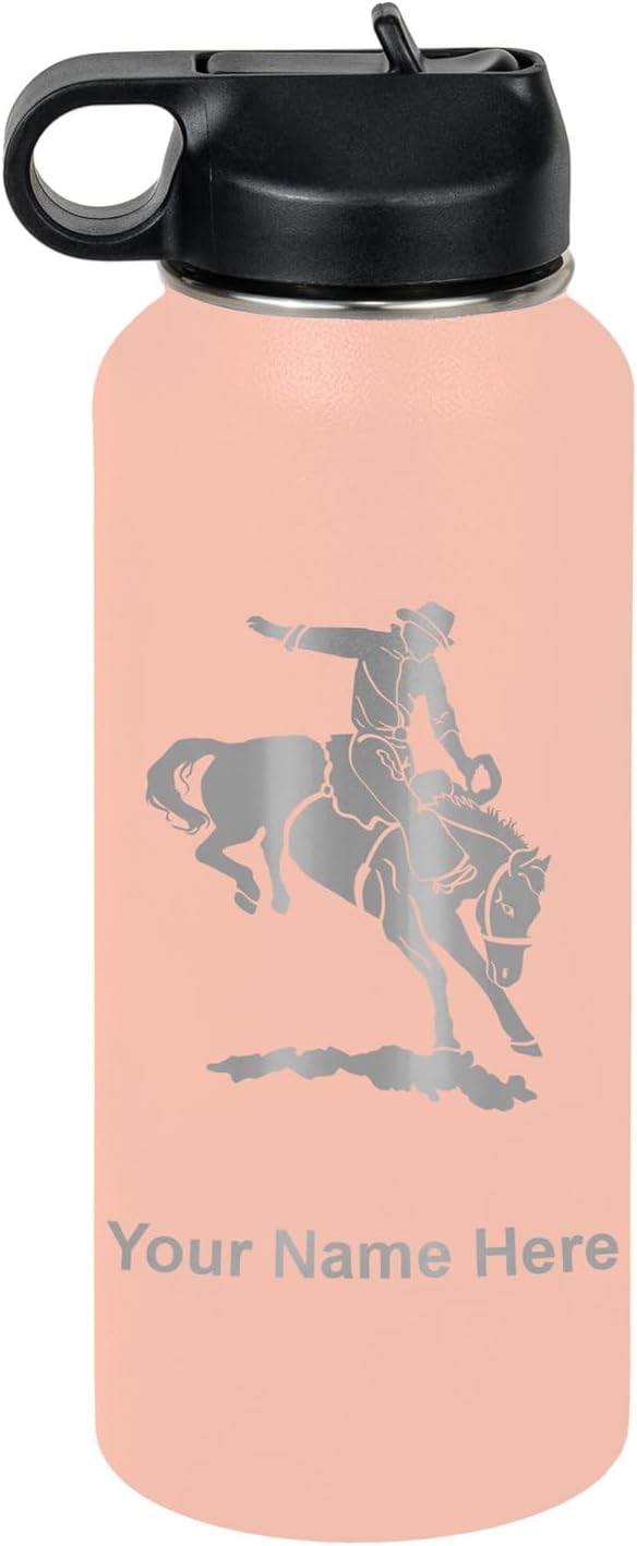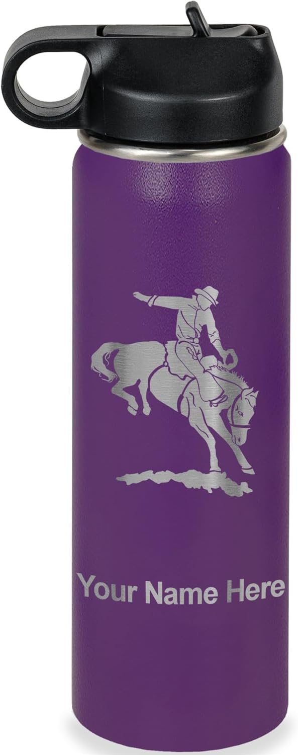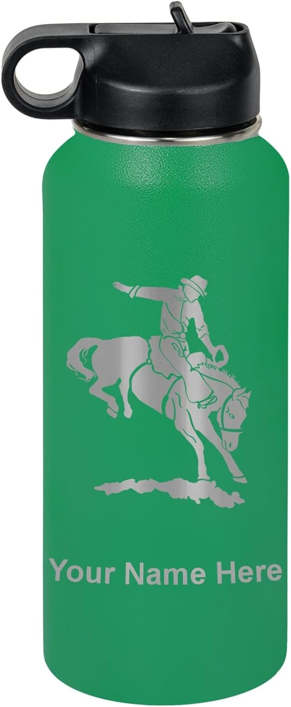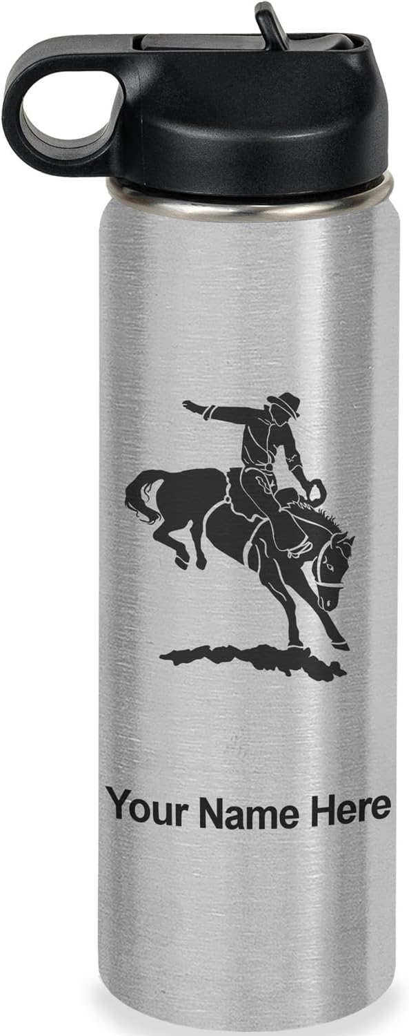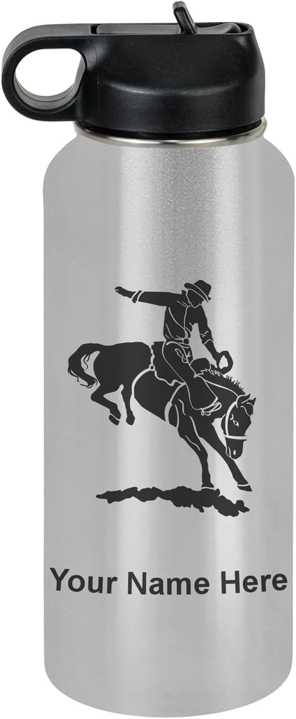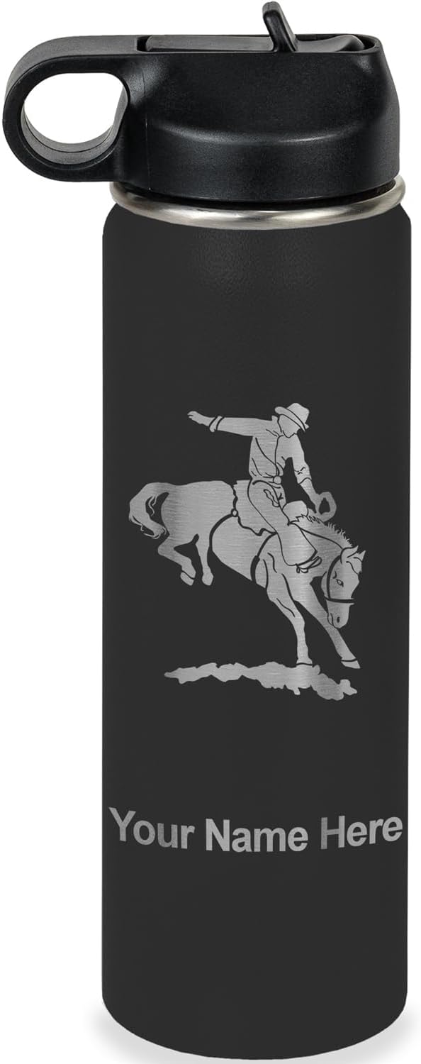 LaserGram Personalized Water Bottle, Bronco Rider, Stainless Steel Double Wall Vacuum Insulated with Flip Top Straw, Custom Engraved Gift (40oz / 1180ml Navy Blue)