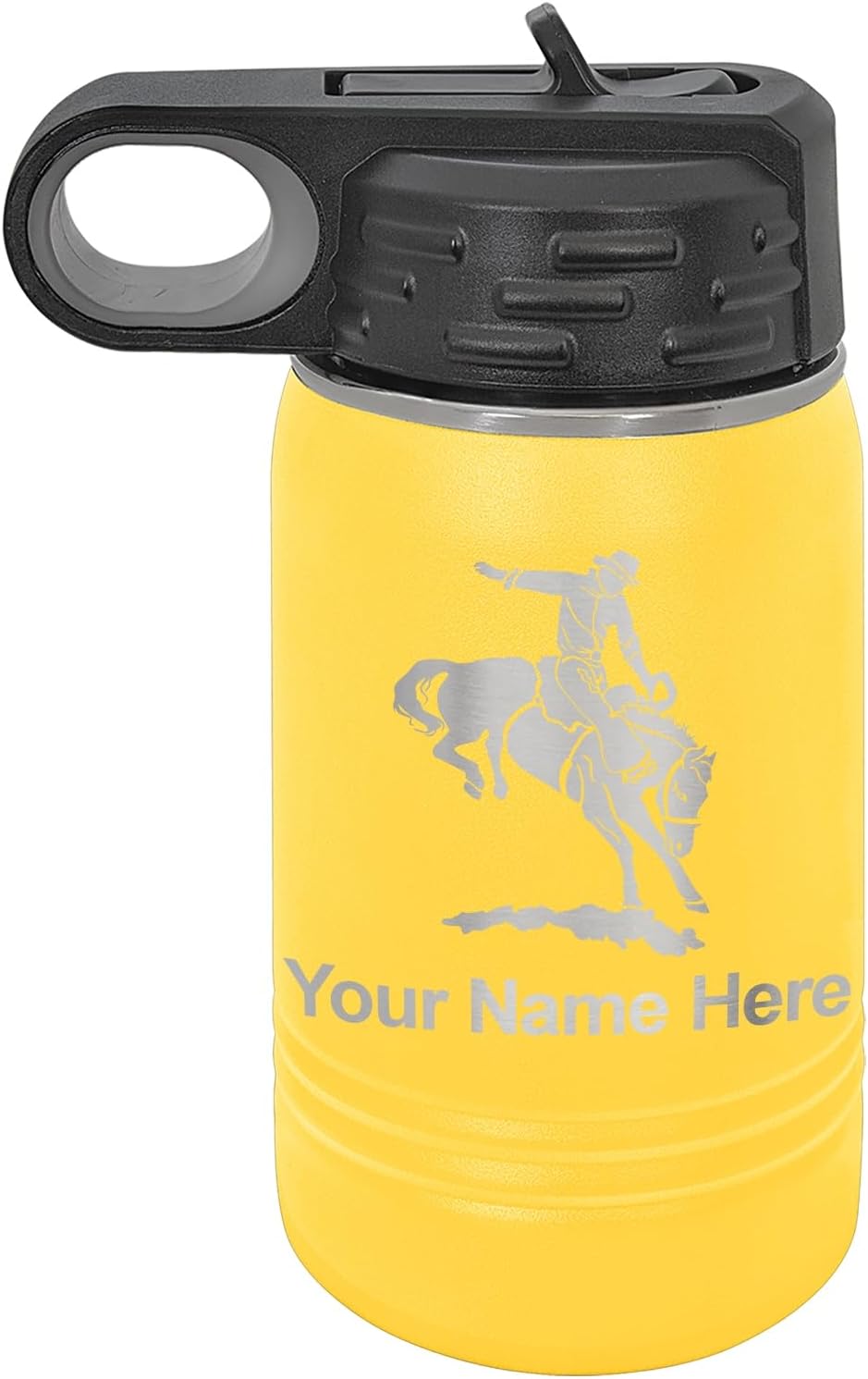• The design and text won't fade since we laser engrave it right onto the bottle. Comes with a screw on lid with a flip-top sipping straw.