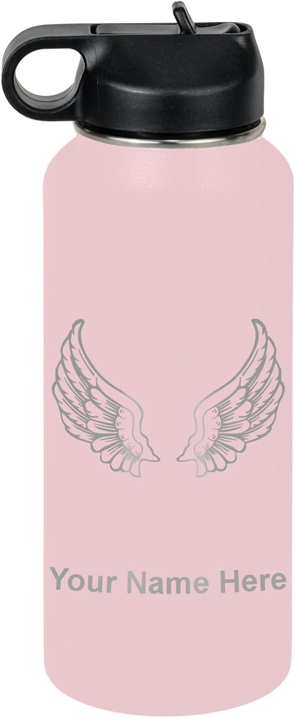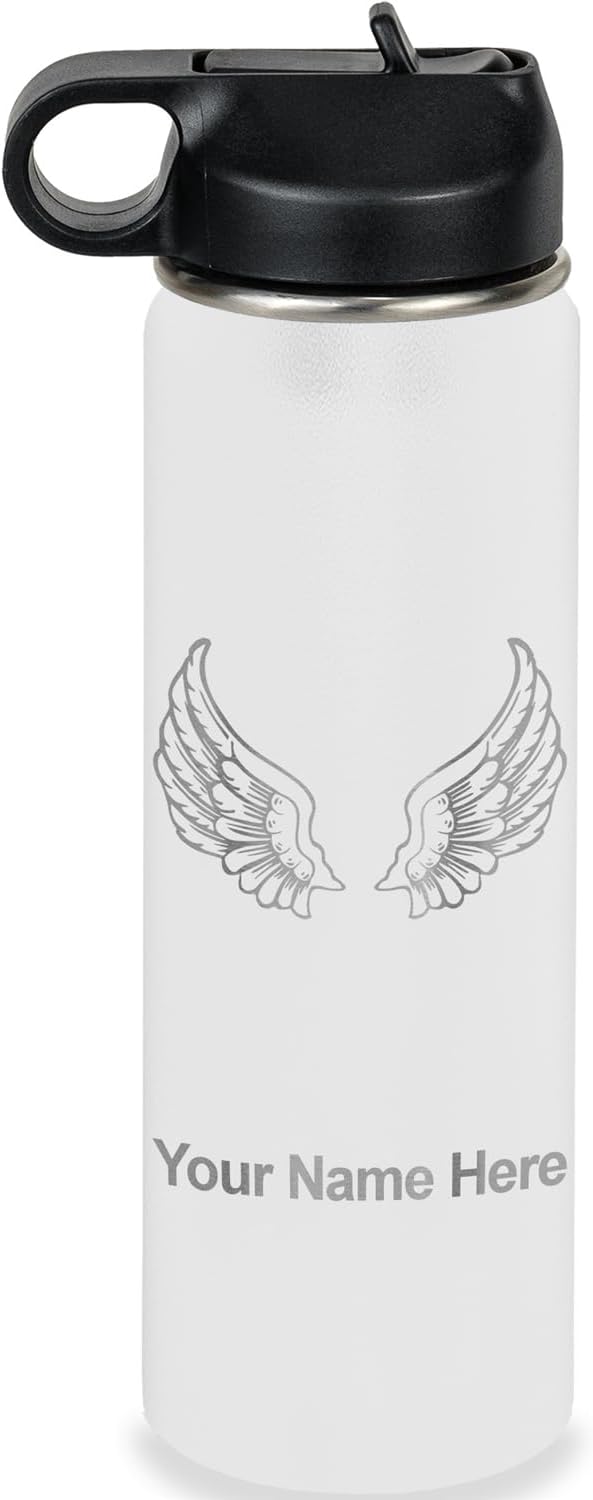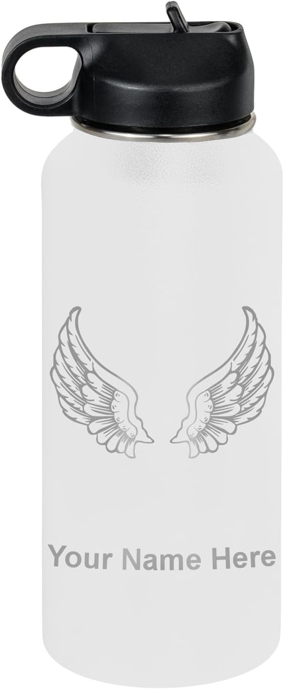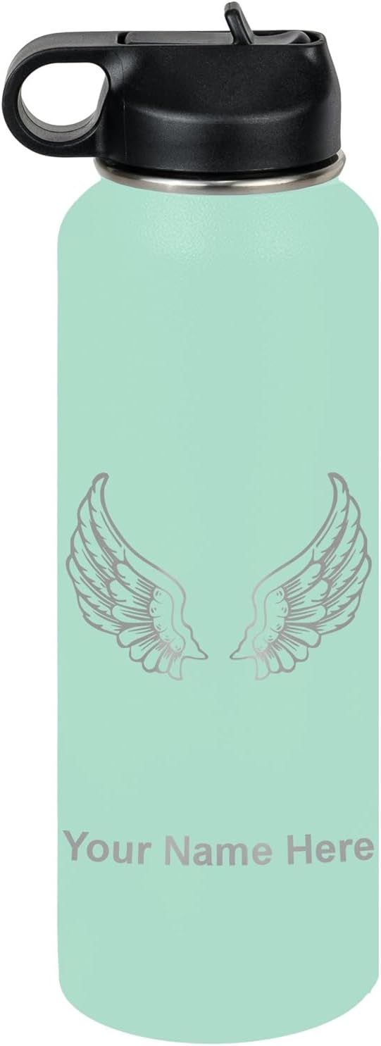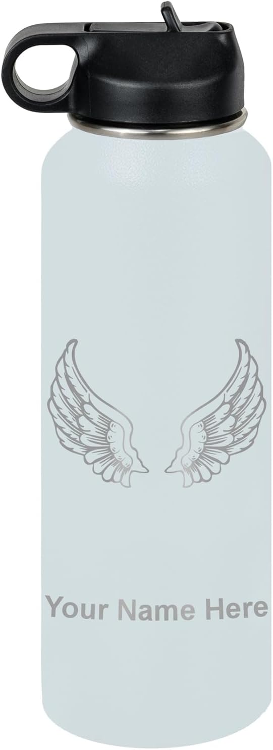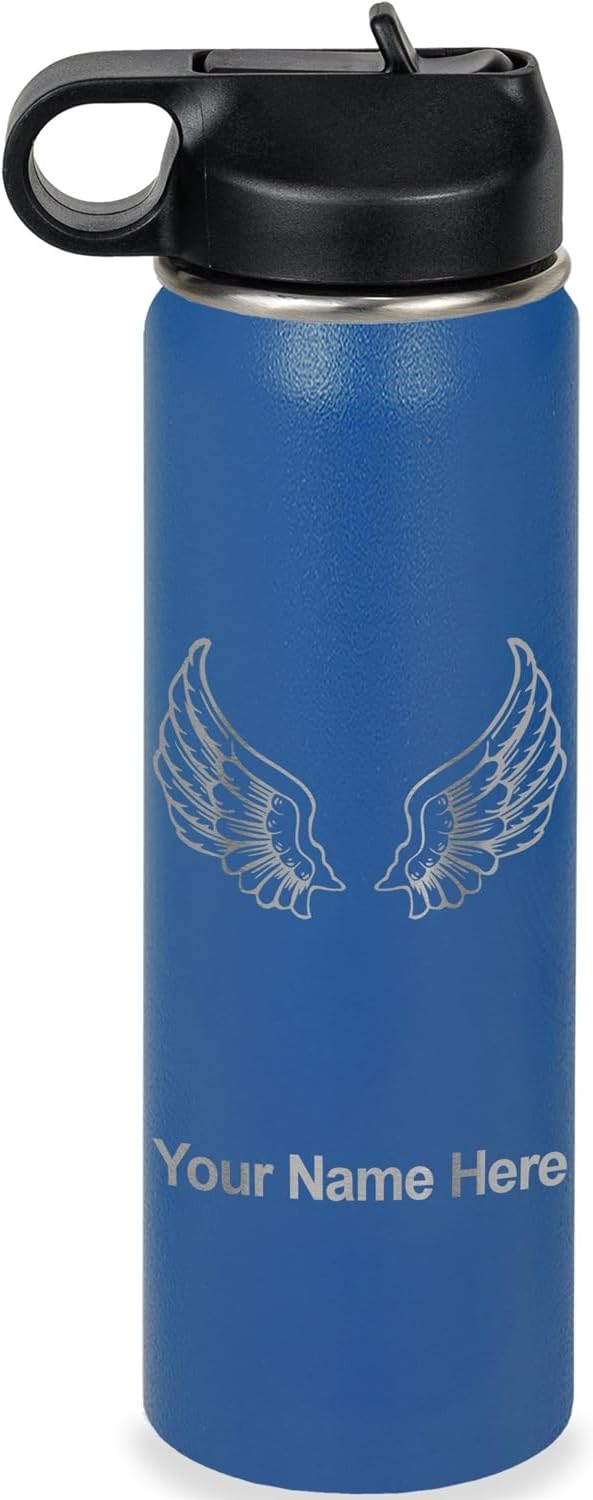 LaserGram Personalized Water Bottle, Angel Wings, Stainless Steel Double Wall Vacuum Insulated with Flip Top Straw, Custom Engraved Gift (40oz / 1180ml Navy Blue)