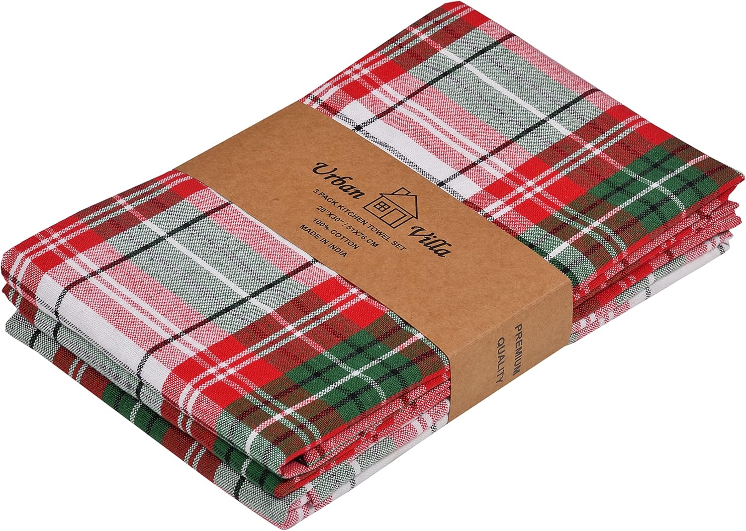 Kitchen Towel : A priority kitchen organizer. A well-made Kitchen Napkin can be Chef's right hand and come to use in Cleaning Veggies, Cutter board, Cleaning/Wipe Dishes, Dry Tupper wares/ Pickle jars. Kitchen towels also doubles as Hand Cloths, Tea Towels, Dish Cloths or Dish towels, Bar Towels, Wash clothes and you name it! 100% premium Cotton: Ideal choice of Kitchen towels. Cotton Kitchen towels are reusable, washable and highly absorbent. Today we have Paper towels and Microfibers and other disposable napkins available in market, but nothing can take the touch of cotton softness and well earth loves biodegradable cotton any day! Make the right choice with cotton towels. Cotton Vs. Linen, What’s better? It's mostly personal choice! In manufacturing Linen leaves less Carbon Footprint then Carbon and is also slightly more absorbent than cotton, but Linen is crinkly after wash and is sensitive to chemicals and not a good choice for kitchen cleaning purpose, as the chemicals bleach linen materials and make it less biodegradable. Cotton on the other hand doesn't shrink, no color fade and is wrinkle free, making it ideal for long wash cycles. The durability and ease of care makes cotton kitchen towels a big advantage in the long run. Urban Villa : Washable, reusable napkins made from 100% premium cotton makes up for extra heavy duty towels. Range of colors with Urban villa goes with any home decor all-round the year.