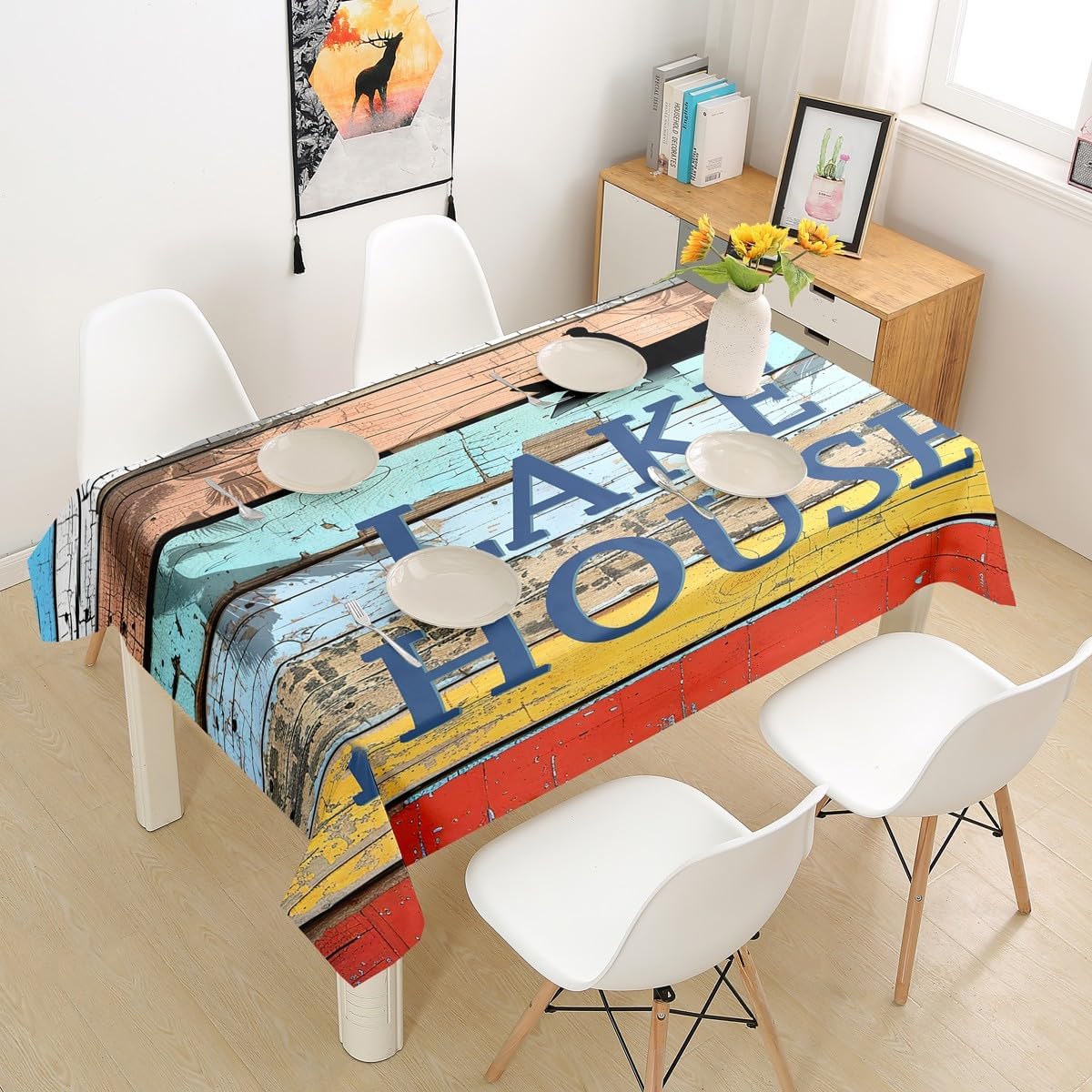 Vibrant Pattern : Specializing in unique designs featuring vibrant colors and interesting patterns, Our collection comprises of a diverse set of elegant designs that reflect real beauty of high quality craftsmanship. Brings grace and style to your home with a wide range of beautiful kitchen and table linen.Put these tablecloth which have printed many different designs on your dinning table and enjoy a happy dinner! Perfect for any occasion at home, party, hotel, restaurant, cafe, kitchen, dining room Family Gatherings. Product Descriptions: Pattern: Decorative novelty modern multi-function tablecloth, tablecover for kitchen,room dinner, indoor , outdoor. Environmentally friendly, no dye substance harming health of your family. Colors won't fade thanks to new digital printing methods. Size Information: Round: 55" Diameter. Square: 55" x 55" (140x140cm). Rectangle: 55"x71"/55"x87"/55"x94" Package Includes: 1 x Tablecloth Perfect Gift: You can find a design and theme for everybody and every interest in our Shop.You can give it to kids,boys,girls,your mom, dad, sister, brother, grandma, grandpa, wife, husband, son, daughter and all other beloved ones with many of surprising designs. Washing Instructions: Machine washable, hanging to dry. Do not bleach.For the color vivid, Please wash it in the cold water.Ironing in the low temperature (if needed). Warm Tips: There may be some slight differences between the color tone of the pictures and that of the actual items due to lighting effects, monitor's brightness, etc. There may be 1-2cm deviation existed.
