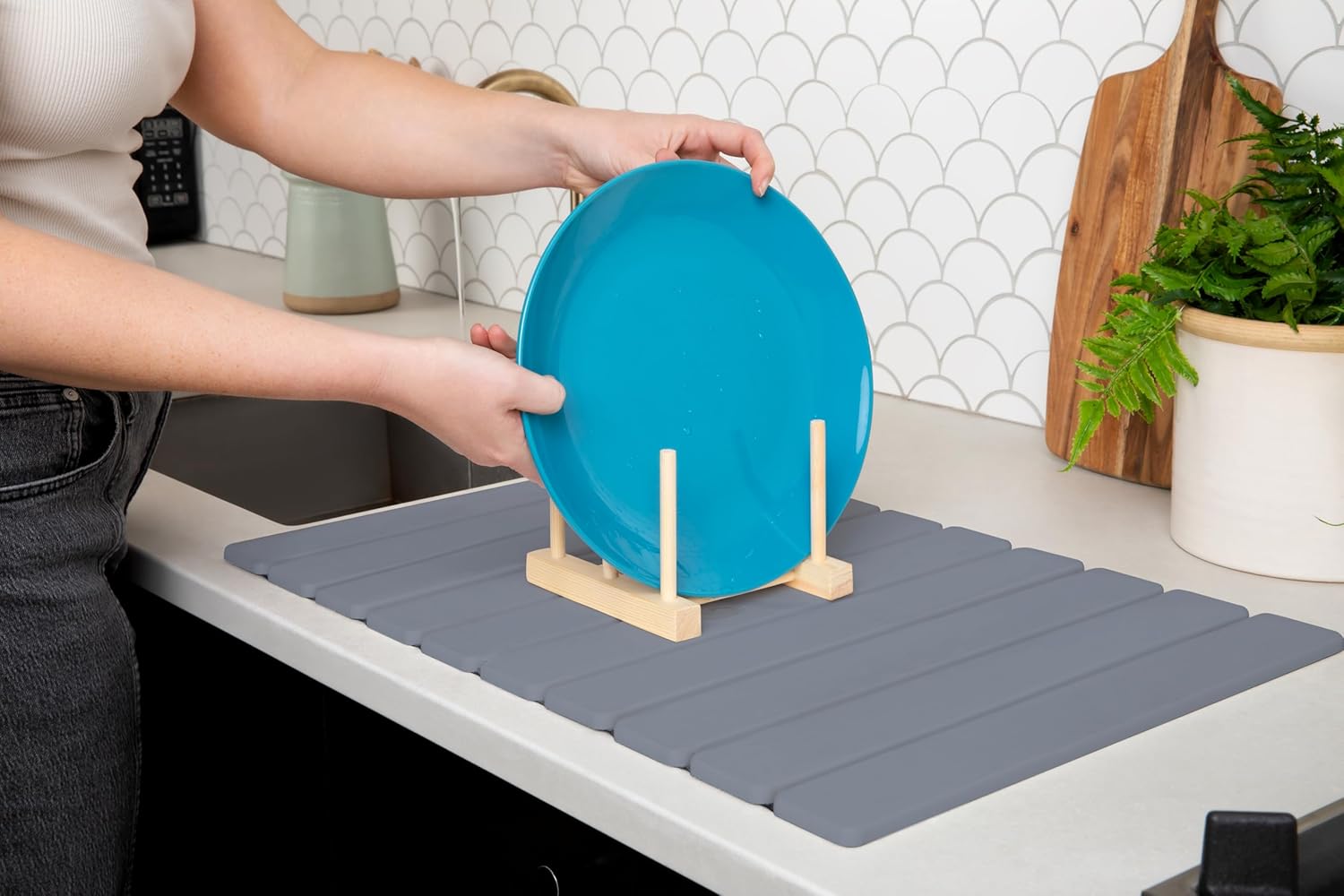 | Product Care Instructions | Simply wipe the surface with a soft cloth or sponge to remove residue or water marks. Allow the mat to air dry completely between uses. Deep Cleaning (Weekly or As Needed): Use the included sandpaper to gently buff the surface. This removes stains and restores absorbency. Wipe clean with a damp cloth afterward. |