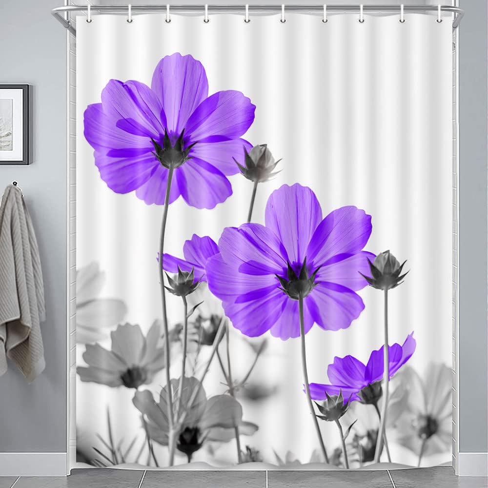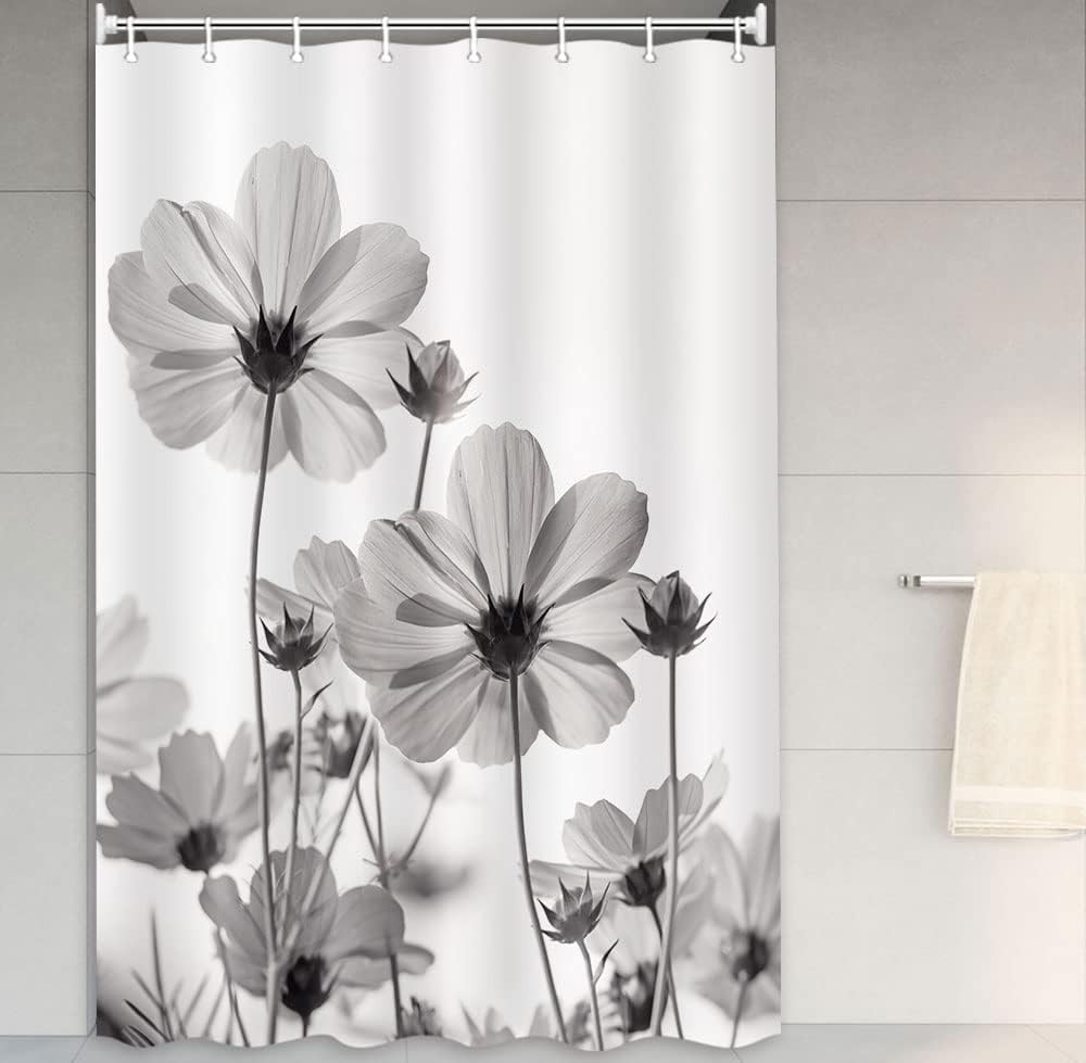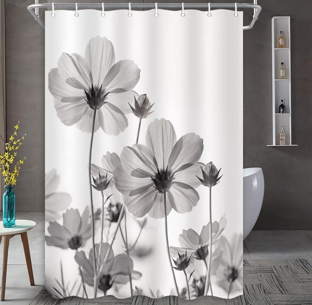 MERCHR Unique Floral Pink Shower Curtain for Bathroom Decor, Pink and Grey Daisy Flower Elegant Wildflower Design Farmhouse Shower Curtains with Hooks Set, 71 X 78 Inches
