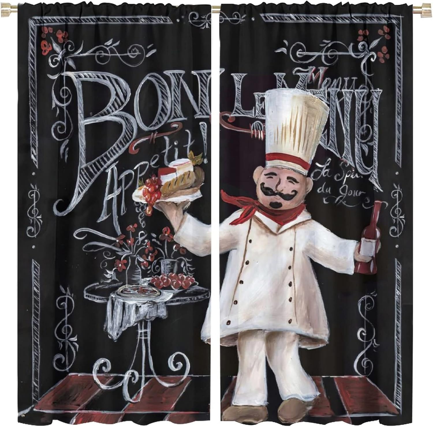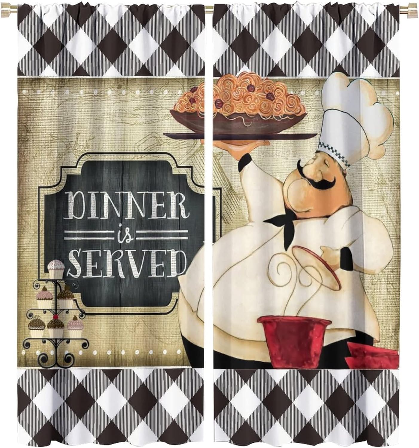 This Vintage Kitchen Chef Curtains can block out 85%-99% sunlight and UV ray ( Darker colors work better), perfect for late sleepers and afternoon naps. Our energy saving curtains insulate against summer heat and winter chill to balance your room temperature, reduce outside noise .This Vintage Kitchen Chef Curtains liven up your indoor or outdoor spaces with a sense of airiness and beauty.These Vintage Kitchen Chef Curtains are suitable for the bedroom, living room, dining room, infant room, kids room, office or other public place.Material:Polyester high quality fabric curtains, warm and interesting, beautifully designed.Kindly Remind:- Don't use sharp things scratching curtains.- For proper fullness panels should measure 1.5-2 times the width of your window.- 24 Hours customer support.- As different computers display colors differently, the color of the actual item may vary slightly from the above images.