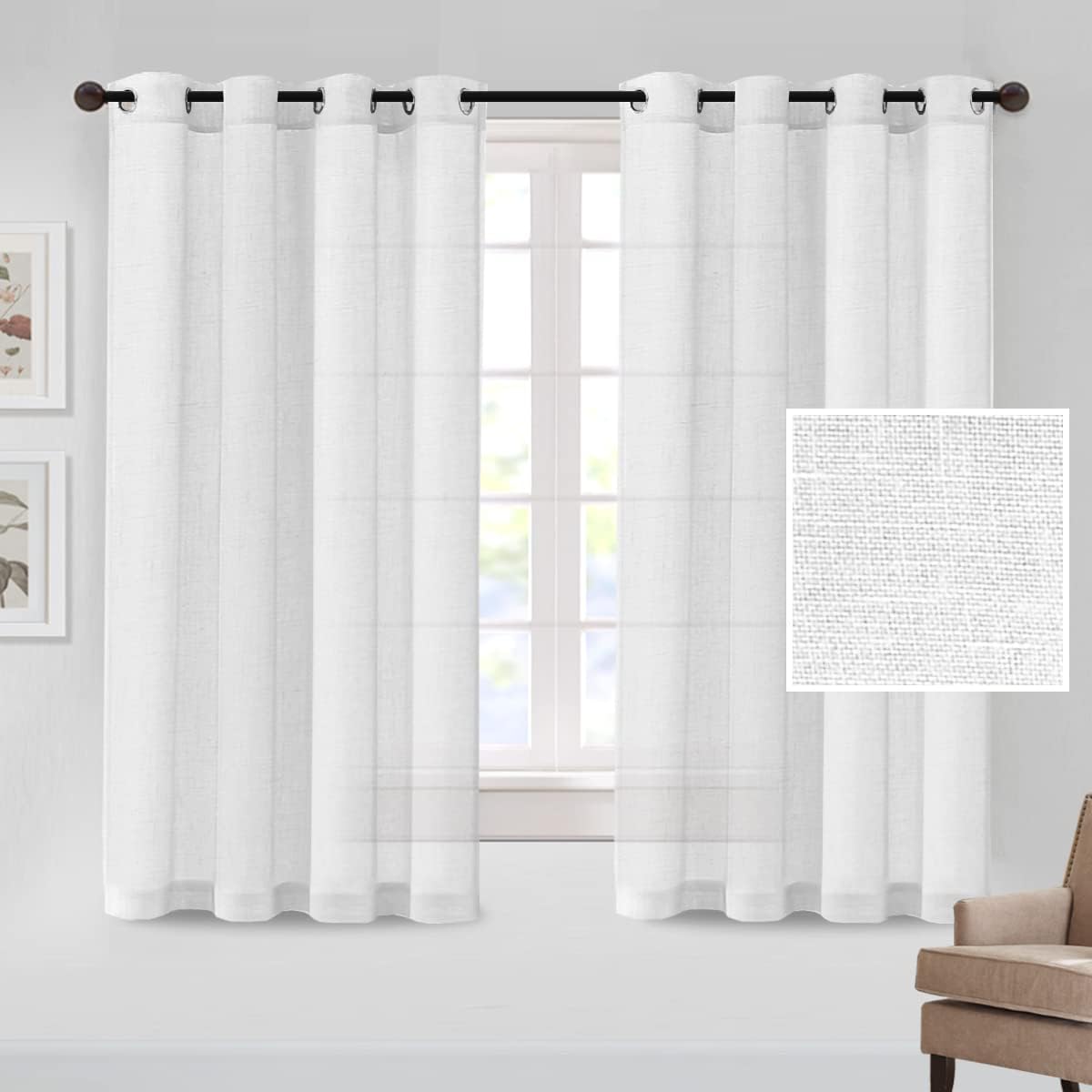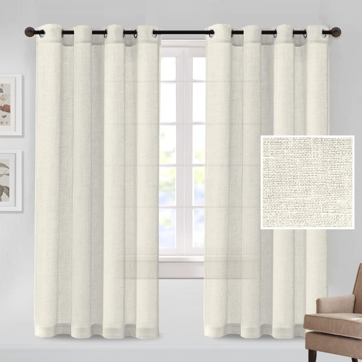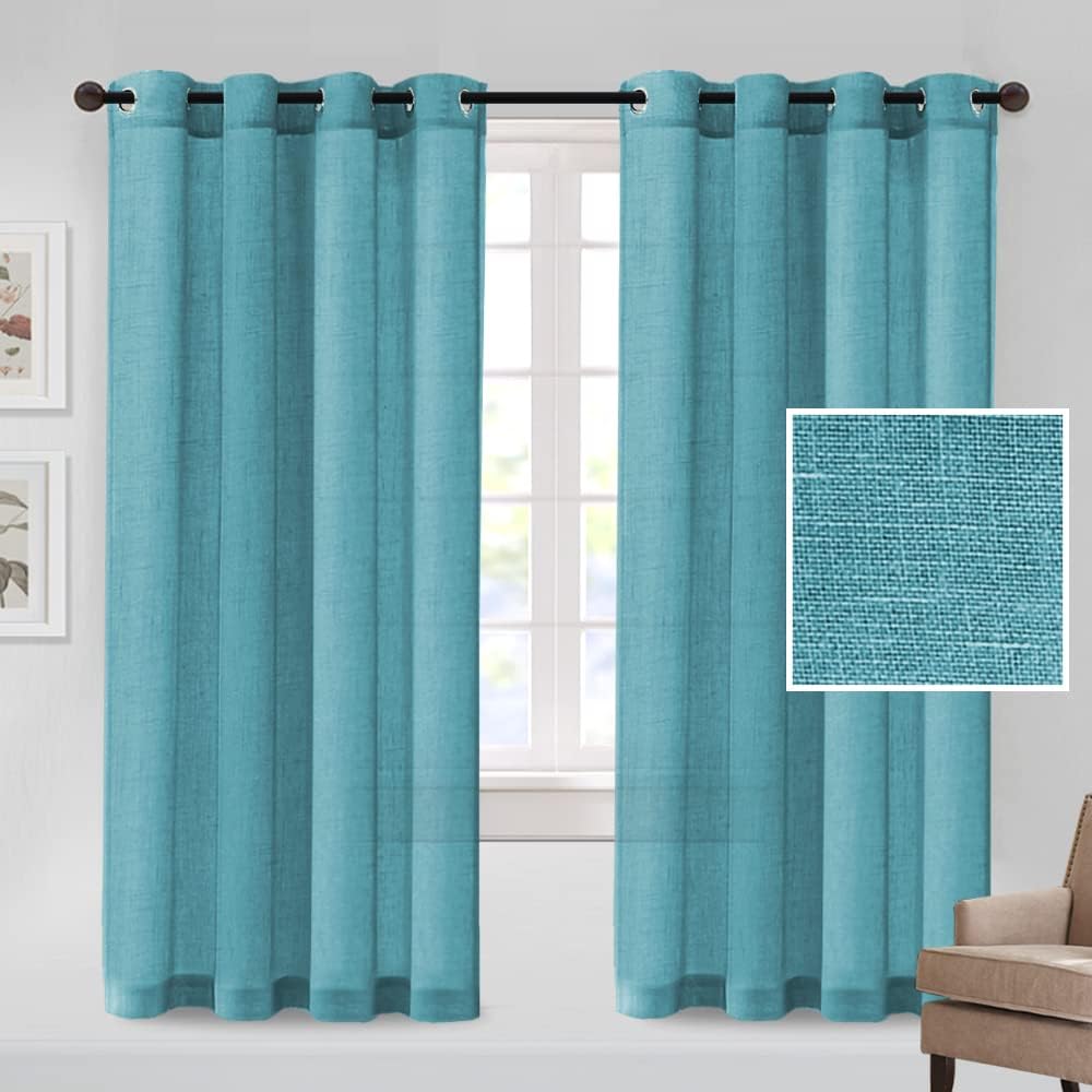 These simply-stylish and neutral MeilleMaison linen blended grommet curtain panels will liven up your indoor spaces with a sense of airiness and beautyHigh FeaturesReal linen is open weave textured from soft, supple man-made fibers, has substantial weight, making curtains more draped and aestheticNot just for show, this linen curtain is designed to let in just the right amount of light to brighten up your space while still offering up a bit of privacyFreshen up any room with this attractive window treatment, offer you a customized, clean, and modern style sure to transform your room from drab to fab in one fell swoopBecause of their understated appeal, these curtains look equally good in formal and informal spaces, also sturdier and durableCleaning InstructionMachine wash cold on a gentle cycle. Use only non-chlorine bleach when needed. Tumble dry on low heat. Use a cool iron as neededMultiple ChoicesSizes: 52"W x 63"L / 52"W x 72"L / 52"W x 84"L / 52"W x 96"L and more new comingColors: Solid in Ivory, Dark Grey, Pure White, Sage, Blue Stone, Aqua Sea, Turquoise and more new comingKindly ReminderFor proper fullness, panels should measure 2-3 times the width of your window