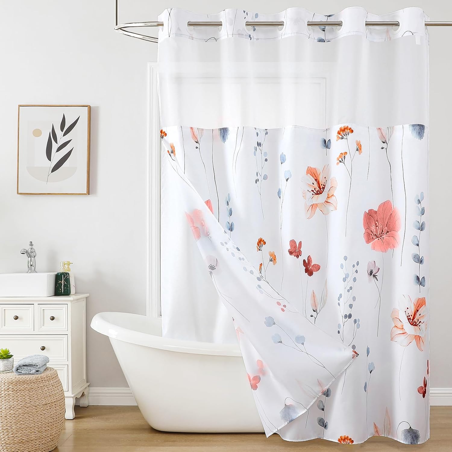 PREMIUM QUALITY: Crafted from 100% high-quality polyester, our shower curtains are skin-friendly and wrinkle-resistant. The timeless watercolor floral design effortlessly complements any bathroom decor, creating a sophisticated and elegant ambiance.