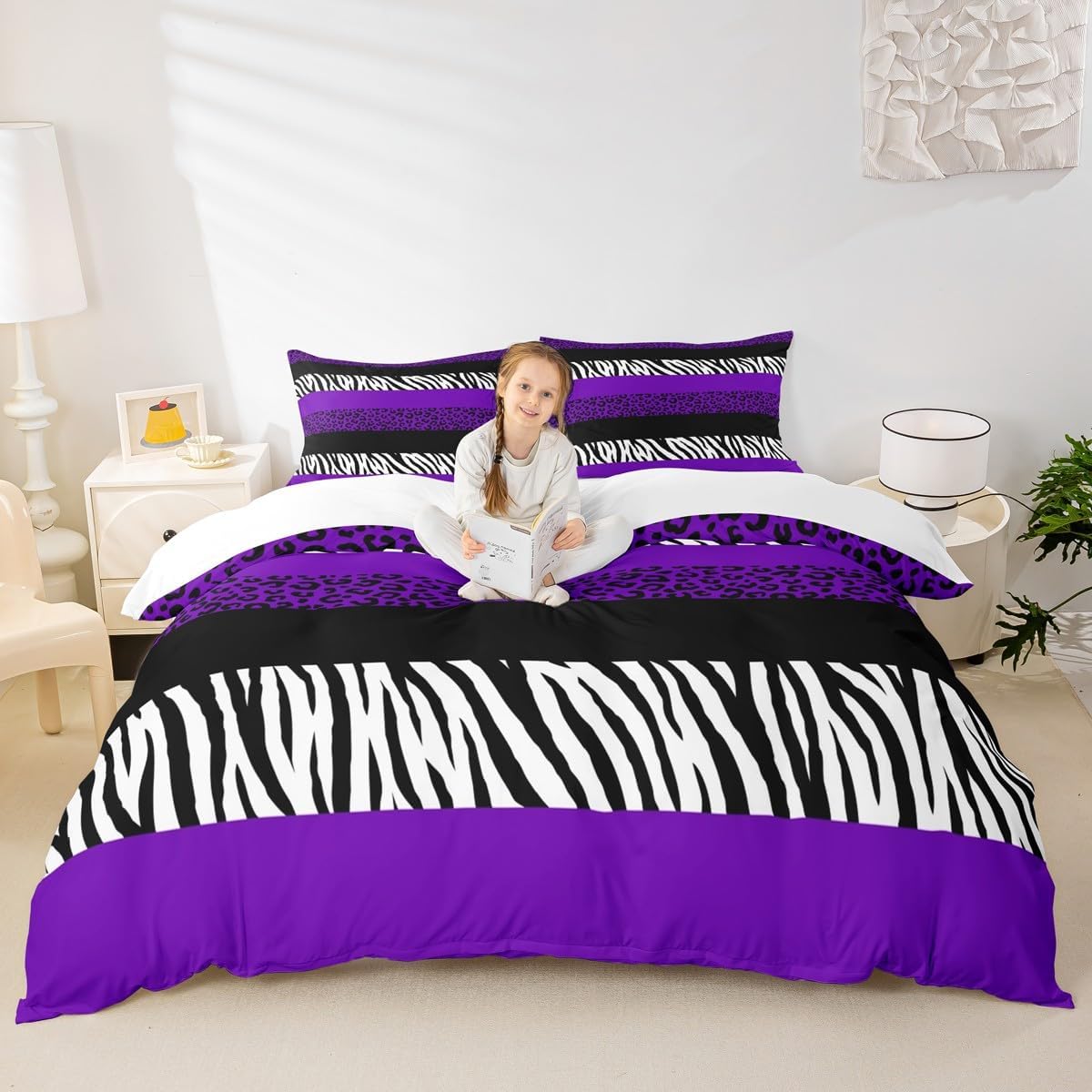 Package Include: Duvet Cover, Pillowcase High-end Duvet Cover Set Pattern Bedding Set, simply decorating your rooms any time you want, bringing you fresh feel for year round use!Long-lasting: Made from 100% polyester microfiber, the sheet set offers long-lasting strength, anatural resistance to shrinking and a noticeably soft hand feel. Size Information:: Twin size (2pcs duvet cover set): 1 Duvet Cover 68" x 90"(173 x 228cm), 1 pillowcase 20" x 30"(51x75cm).Without Comforter.Full size (3pcs duvet cover set): 1 Duvet Cover 80" x 90"(200 x 229cm), 2 pillowcase 20" x 30"(51 x 75cm).Without ComforterQueen size (3pcs duvet cover set): 1 Duvet Cover 90" x 90"(229 x 229cm), 2 pillowcase 20" x 30"(51 x 75cm).Without ComforterKing size (3pcs duvet cover set): 1 Duvet Cover 104" x 90"(264 x 229cm), 2 pillowcase 20" x 36"(51 x 93cm).Without ComforterPersonalize your bedroom:Beautiful design and colorful print, makes your bedroom unique and brings you a wonderful dream.Washing instructionsMachine wash separately in cold water,hang dry, do not bleach.Occasion:The cute soft duvet cover bedding sets designed for Children ,Adult, Men, Women, Teens. This duvet cover set is also suitable for full seasons, Spring, Summer, Autumn and Winter.( You can also buy it for your family and friends :)