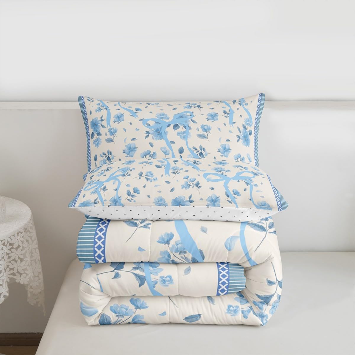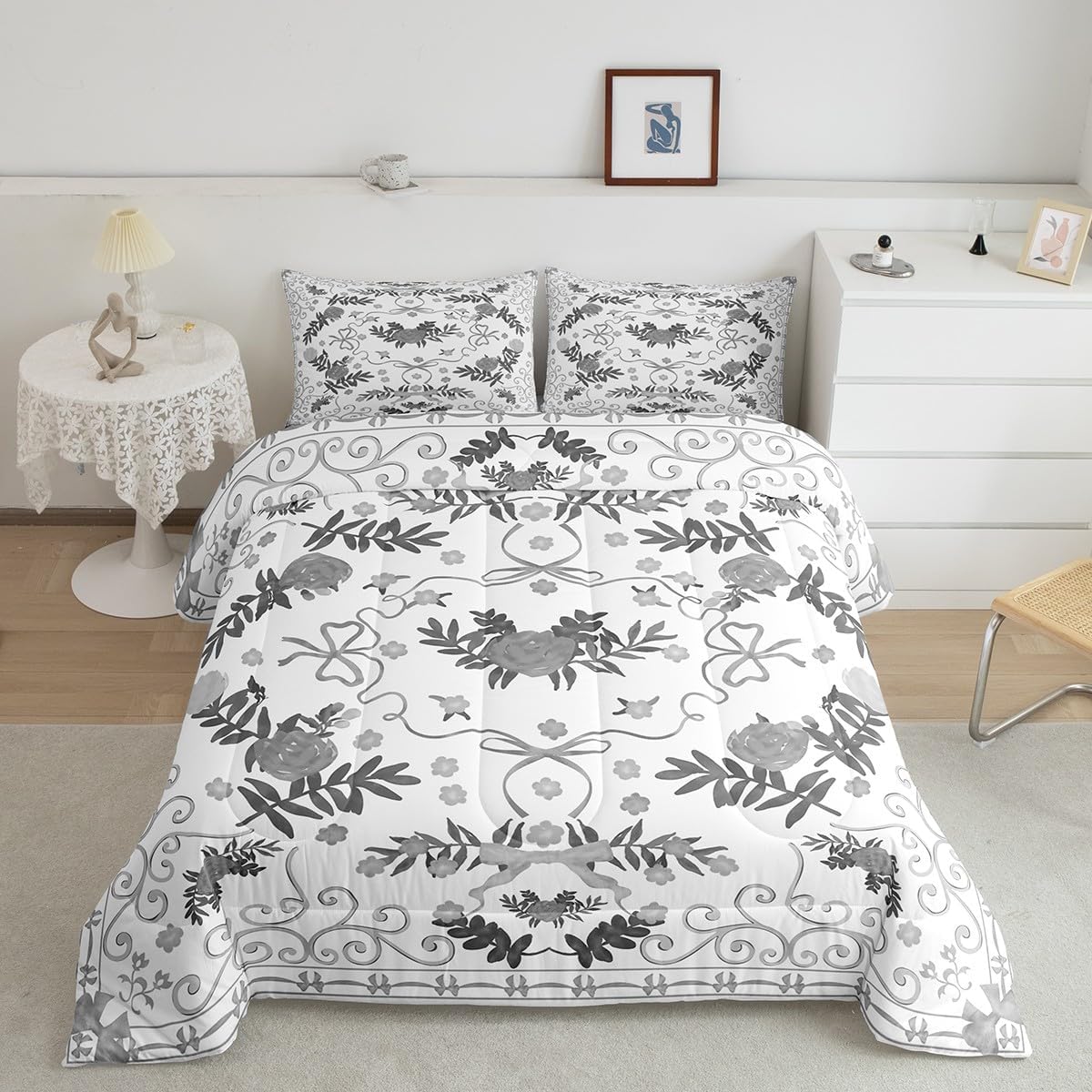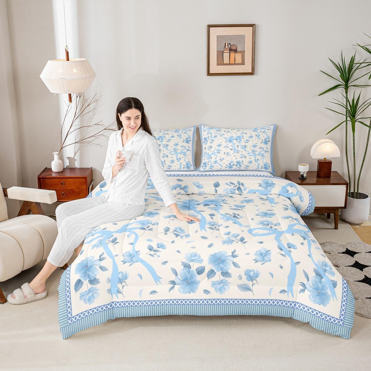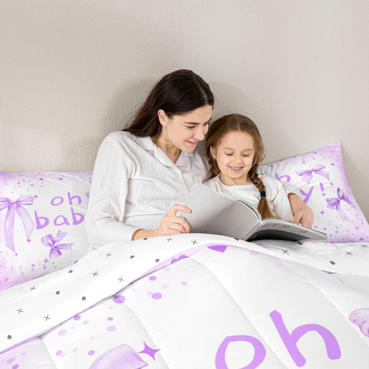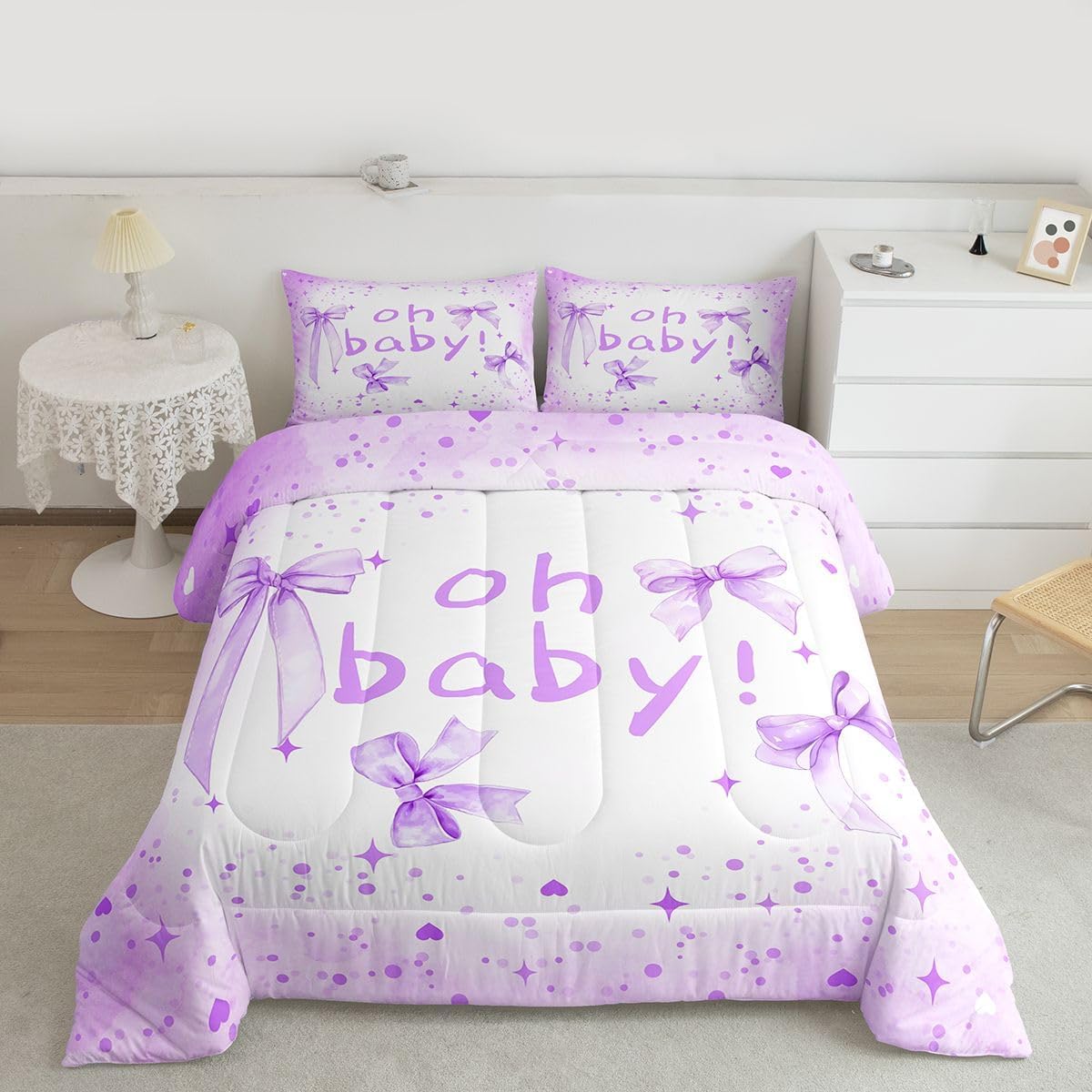 Erosebridal Purple Bow Twin Comforter Set for Girls,Floral Coquette Bowknot Bedding Set Bow Tie Bohemian Quilt Farmhouse Preppy Room Decor Vinatge Watercolor Bows Botanical Aesthetic Bed Set