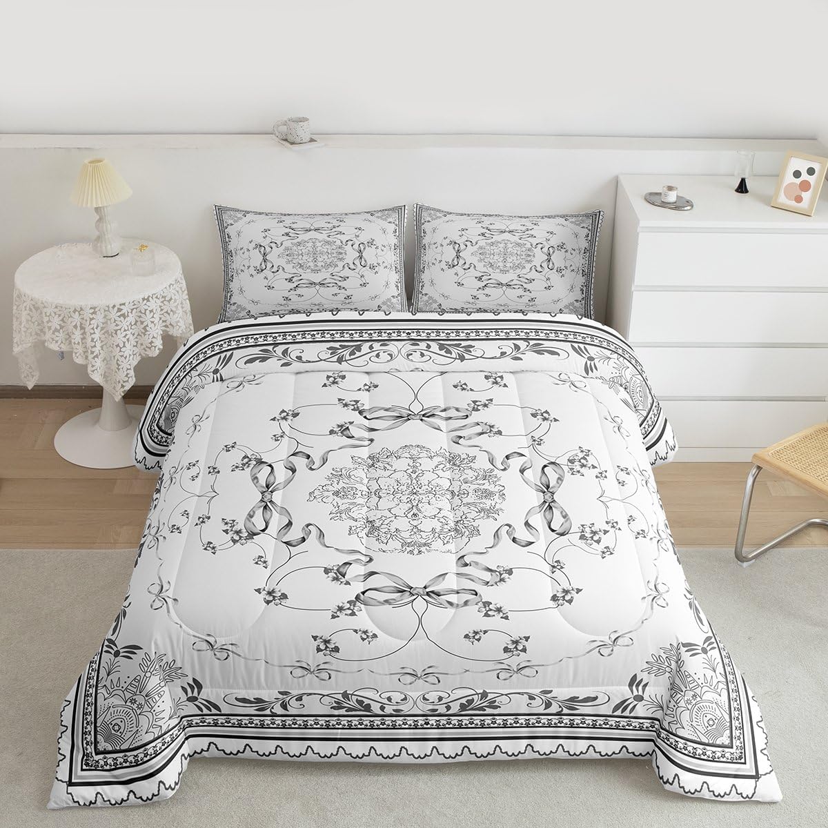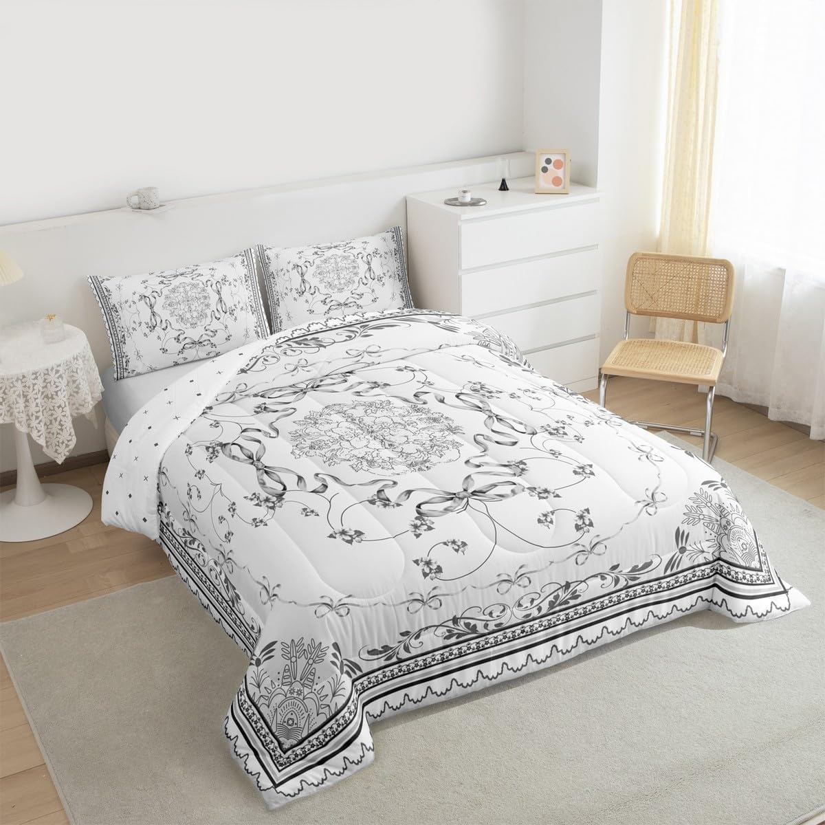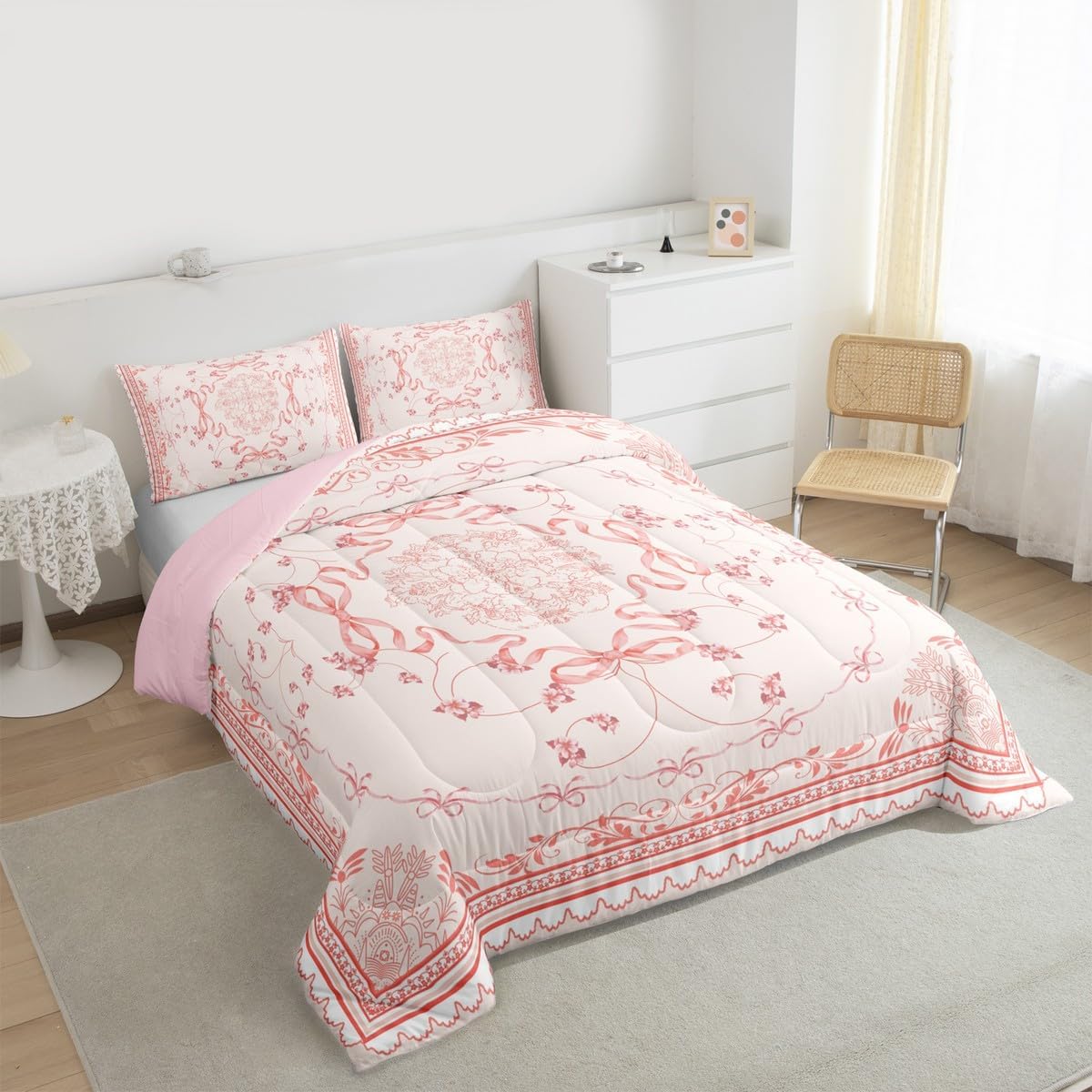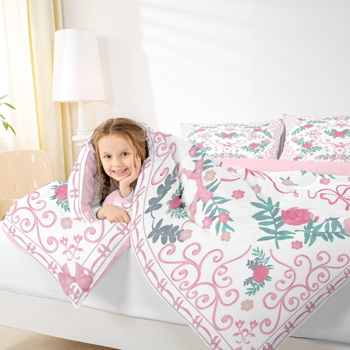 Erosebridal Purple Bow Twin Comforter Set for Girls,Floral Coquette Bowknot Bedding Set Bow Tie Bohemian Quilt Farmhouse Preppy Room Decor Vinatge Watercolor Bows Botanical Aesthetic Bed Set