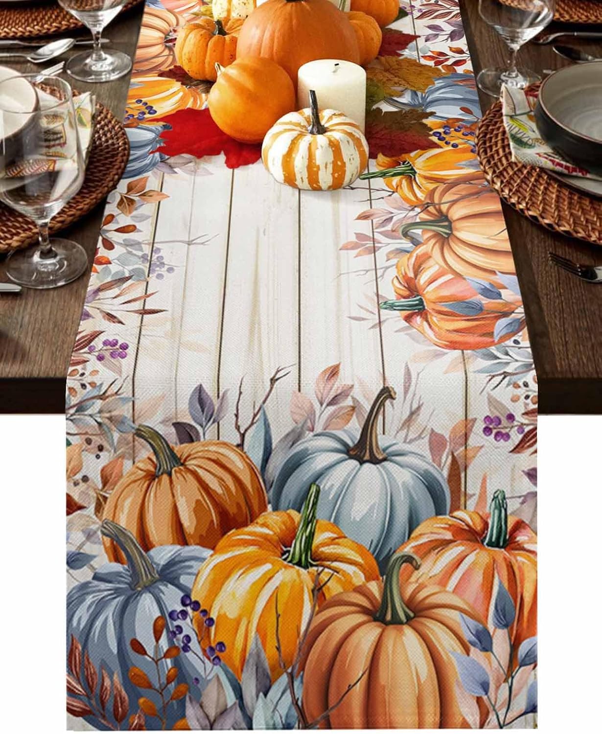 Premium Material- High-quality cotton and linen mixed fabric.- Soft and comfortable, feel smooth.- Not easy to wear.- Reusable. Exquisite WorkmanshipKitchen table runner is surrounded by tight edging, meticulous tailoring, clear routing, and it is not easy to get off the line.Farmhouse DécorFarmhouse table runners can be used for dining tables, bedroom bedside table, coffee tables, console tables, TV cabinets, kitchen island, dressing table, holiday party, wedding, end tables, etc. to illuminate any space.Protect The Integrity Of The Desktop- Holiday table runner fabric soft and comfortable, will not scratch the table.- Rustic table runner can avoid the hot rice hot dishes scald table when repast.- Dining table runners can avoid oil penetration the tiled tabletop.- Cotton and linen table runner protects the table from sharp objects such as knives and forks.Unique GiftsCoffee table runners are a good gift-giving choice. The best gift for parents, friends, lovers, colleagues and neighbors on Christmas, Halloween, Valentine's Day, Father's Day, Mother's Day, Independence Day, St. Patrick's Day, Easter, Thanksgiving Day or housewarming, anniversary, wedding, birthday party, etc.Easy To Care- Machine washable and hand washable, best for hand wash.- Soft cold water cycle machine wash, dry naturally.- Iron at low temperature when necessary to remove wrinkles.- Don't use bleach.
