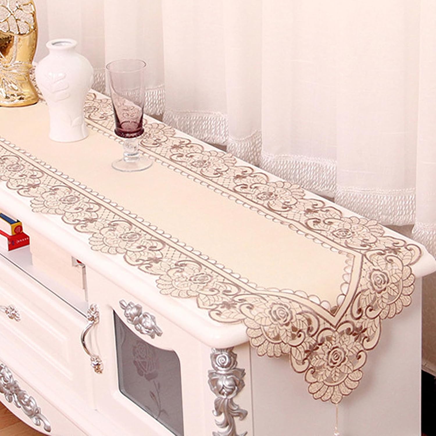 15 Inch X 96 Inch Flowers Embroidered Table Runner, Vintage Classic Polyester Lace Floral Dresser Scarves for Dining Coffee Table Kitchen Home Decor Wedding Party