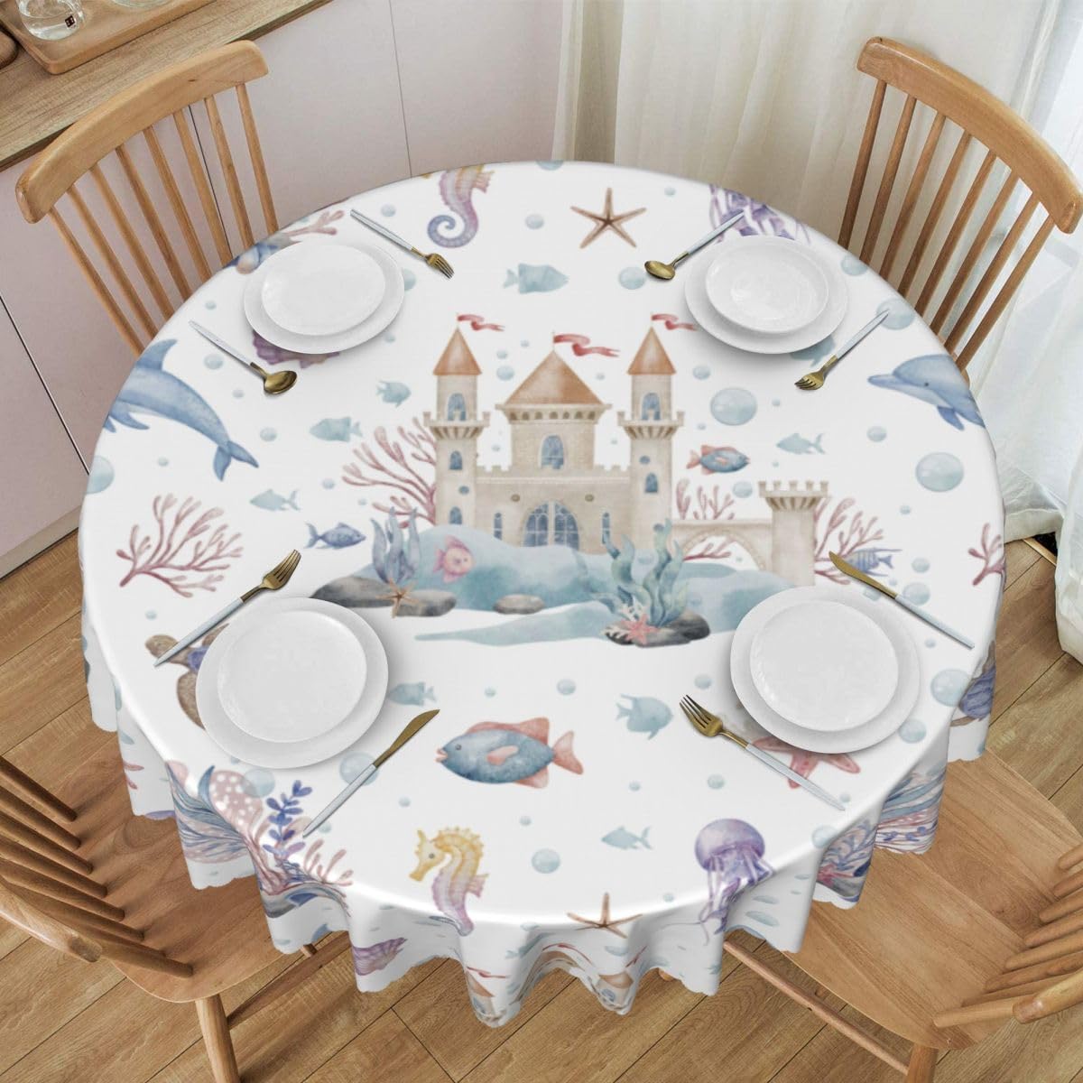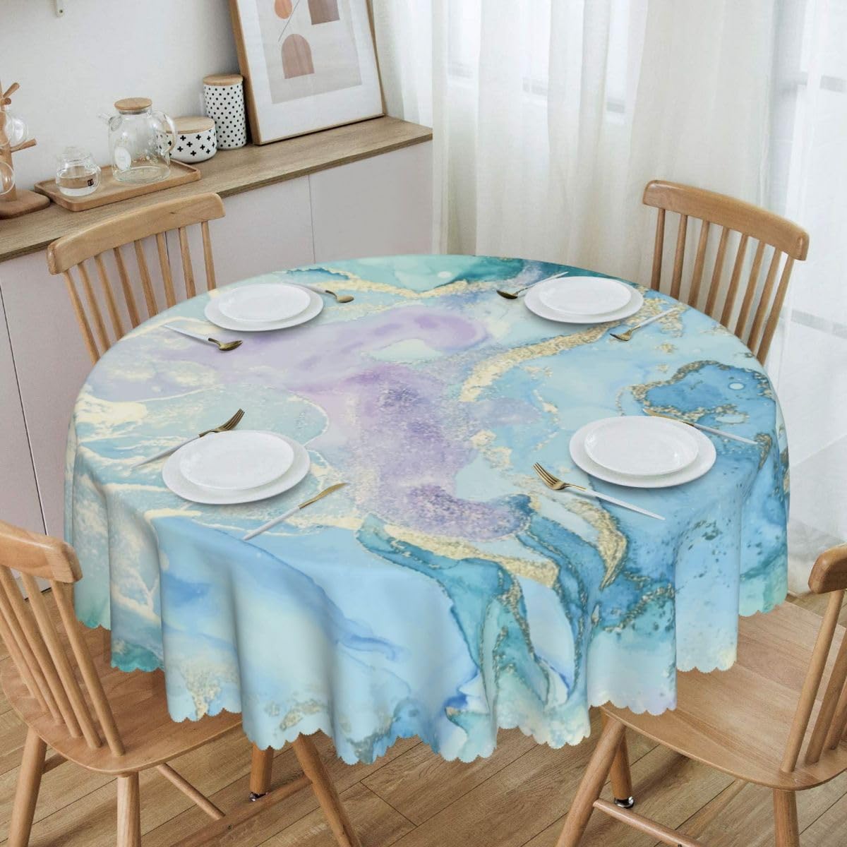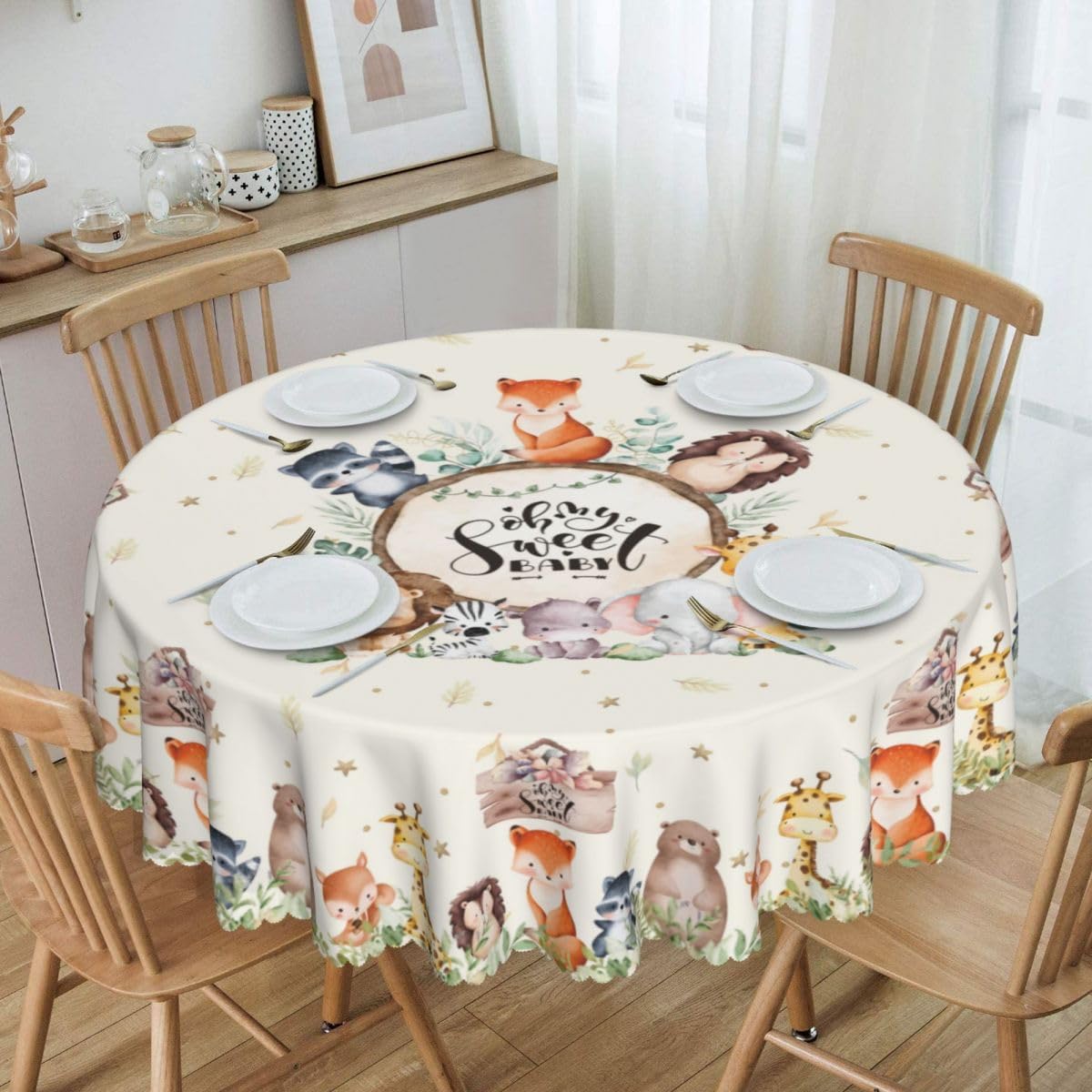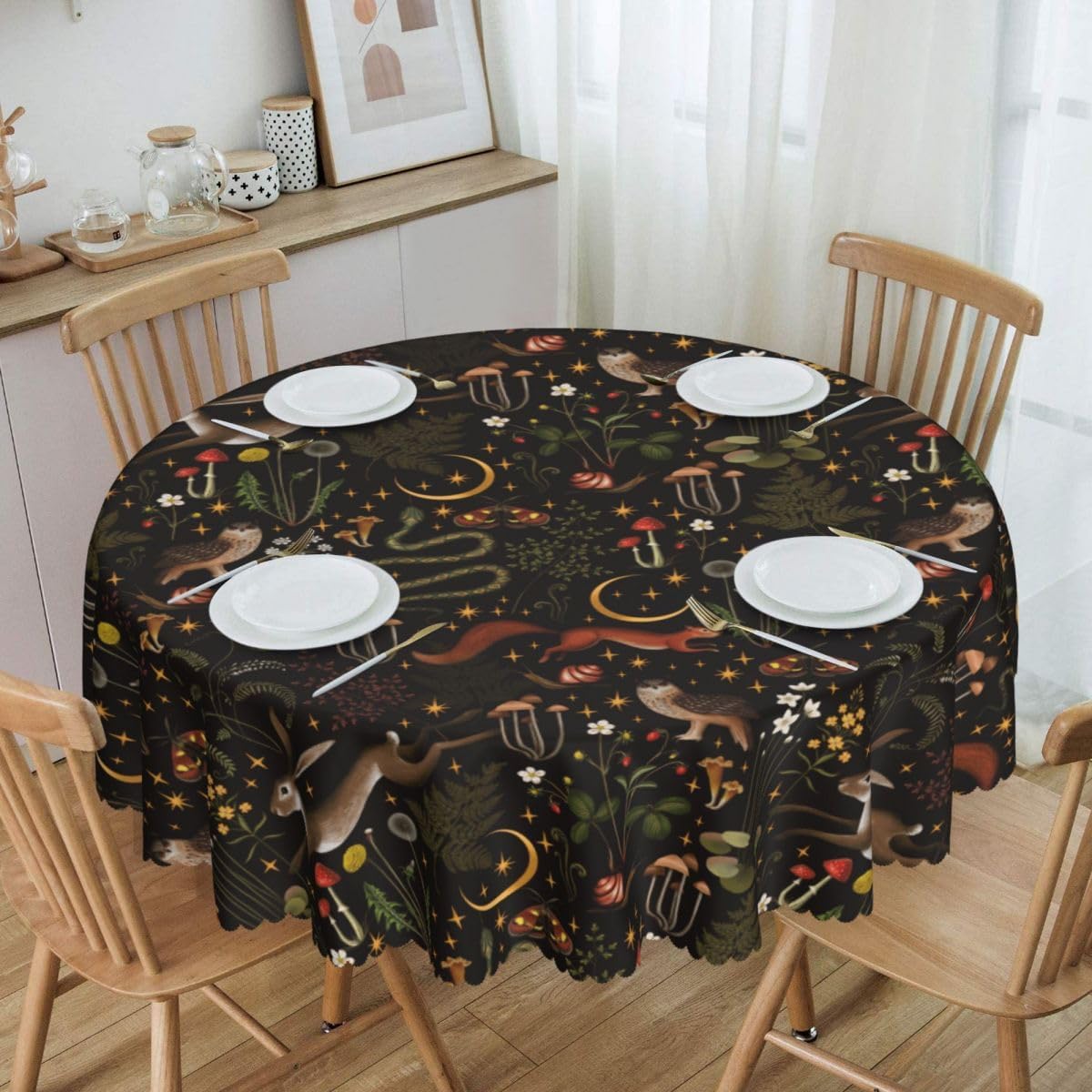 Specification: -Material: Polyester -Size: 36-70Inch 【High Quality Tablecloth】The tablecloth is made of durable waterproof polyester fabric, sewn firmly, soft and durable, protecting your table and furniture from scratches. Daily desktop matching adds different design features to your home decor.【Unique Design】The tablecloth combines popular elements to decorate your dining table, with bright colors, clear images, and is not easy to fade. It can add bright colors to any existing home decoration and provide you with a wonderful living experience.【Size Selection】This tablecloth comes in different sizes and is suitable for tables ranging from 20 inches to 58 inches, meeting the needs of most households.【Occasion】This tablecloth is perfect for dining tables, coffee tables, terraces, gardens, desks, banquets, storage desks, etc., for daily indoor or outdoor picnics. It is also an excellent gift for housewarming, birthdays, weddings, and various holidays.【Easy to Clean】This tablecloth is easy to clean and helps protect your dining table and furniture. It can be machine washed in a gentle cycle or hand washed in cold water. Separate cleaning to avoid prolonged soaking.