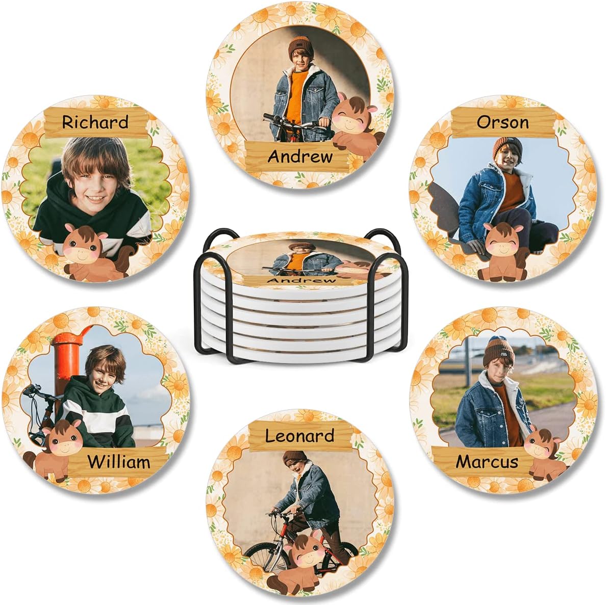 WHY DON'T YOU TAKE A LOOK AT OUR PERSONALIZED COASTERS FOR DRINKS?Our custom coasters for coffee table are able to absorb moisture and water drips from cold drinks and do not stick to the bottom of the glasses when lifted.The cork mat at the bottom protects the surface of your furniture from scratching. Besides that, it prevents custom coasters for drinks absorbent from slipping and keeps them in place.MULTI-USED HOME ABSORBENT COASTERS FOR DRINKSDrink ceramic coasters can also be with hot and cold mugs, glasses, and bowls. In contrast to leather and silicone coasters, which generally stick to your beverage container. This is a good choice!HOUSEWARMING PRESENTAre you going to a housewarming celebration or stopping by your friends' new home? This customized coaster is a fantastic present. It is excellent for any living area, kitchen, man cave, bar, end tables, or college dorm room.SUPPORT FOR YOUR ORDERPlease contact us if you have questions about our products! Because you are our valued customers, we will make every effort to meet your requirements and expectations.Then, let's choose to put this product in your shopping basket and have a pleasant browsing experience!