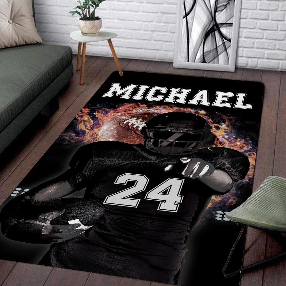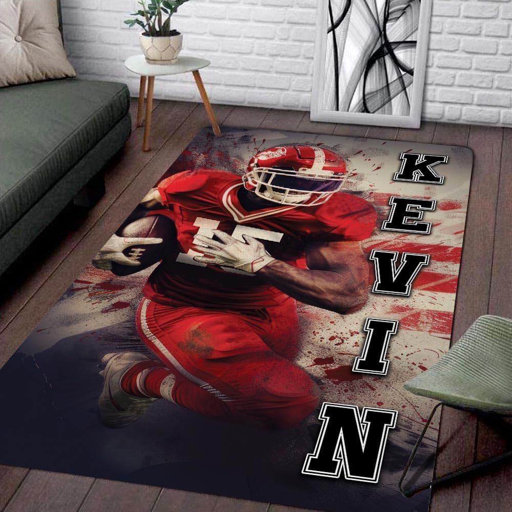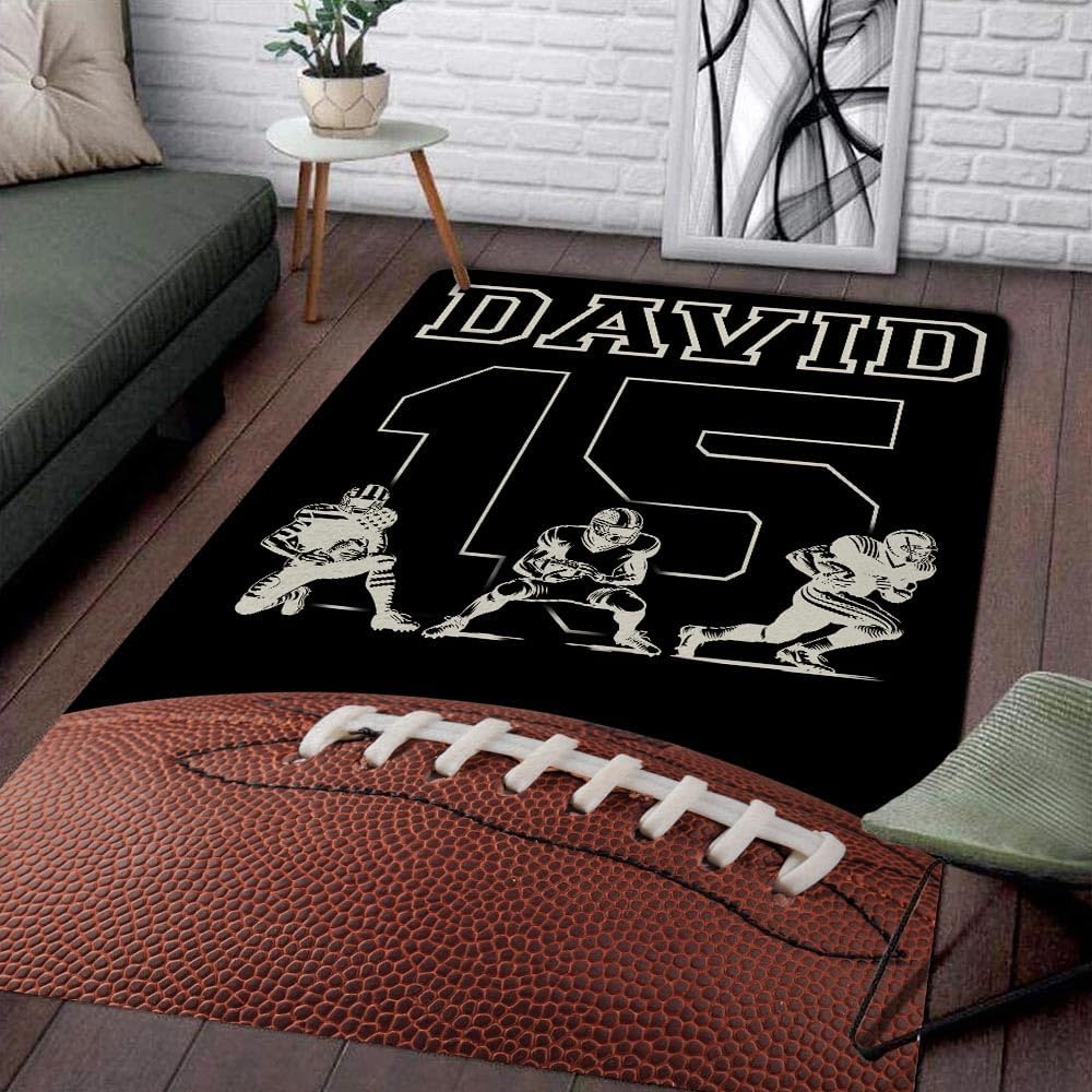 π π DESIGNED FOR FOOTBALL LOVERS, FOOTBALL PLAYERS, FOOTBALLERS, FOOTBALL FANS, TEAM ππ : "Football is an honest game. It's true to life. It's a game about sharing. Football is a team game. So is life."Size:X-Small: 2x3ft (60 * 90cm)Small: 3x5ft (91 * 152cm)Medium: 4x6ft (122 * 183cm)Large: 5x8ft (152 * 244cm)Note: Due to the shipping progress, the rug was packed by vacuum so the crease is unavoidable and this is not a defective.Each of our rugs is made from inter sponge to create a high-density memory foam cushion which can effectively relieve foot pressure. Processed with a premium heat dye sublimation print for long-lasting color vibrancy.The low-profile pile height of 4mm makes this rug look great in any room and perfect for placing under furniture.The underside is constructed from high-quality epoxy for a non-slip grip and extra durability.Stain-resistant material makes cleaning a breeze. Use a damp cloth with mild soapy water to clean (avoid bleach) and let air dry.Rugs arrive vacuumed sealed for protection during the shipping process once opened rugs may take up to 24 hours to lay flat.We recommend a light vacuuming of the rug to assist in the settling process.Professional personality DIY printing design, custom personalized and easy to match, suitable for a variety of occasions, perfect for home decor, floor decor indoor, living room, bedroom, dining room, or children's playroom.It's a personal gift for lovers: Take this ultra-soft rug for your lovers for Valentine's day, Christmas New Year, Thanksgiving, or Birthday, etcAwesome gift for any occasion, or just without any special reason, to show some love to your loved one! He will know you put in the extra effort to find something special.β β β Scroll to the top Click Customize Now to select the options of 'Size', which you would like before Adding to Cart to begin your experience.