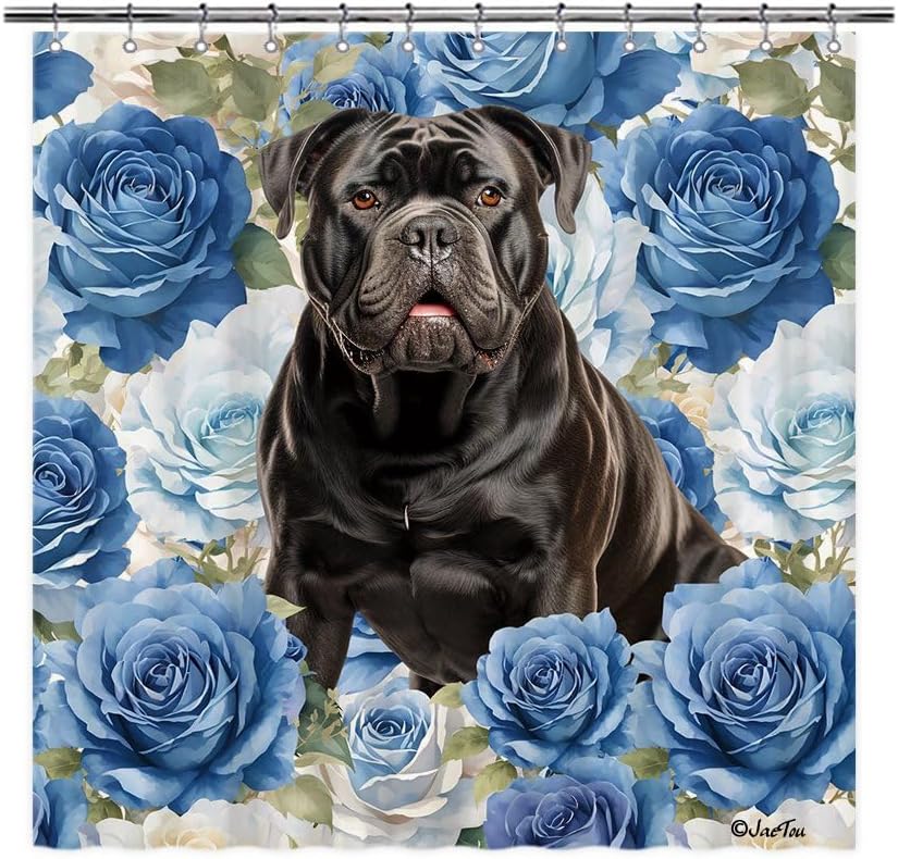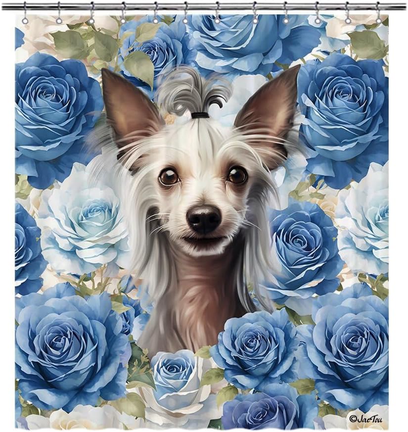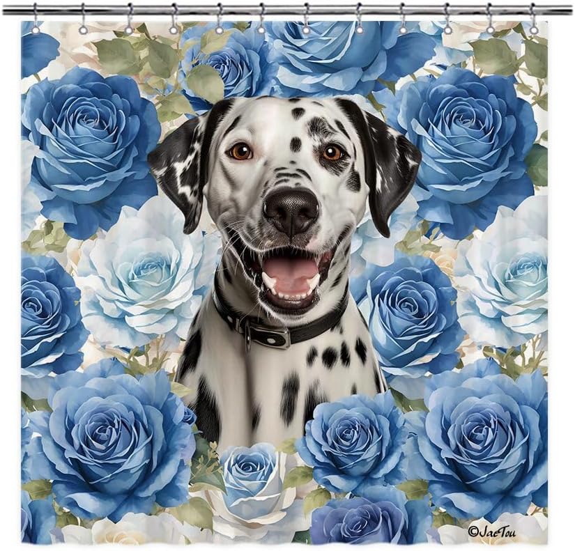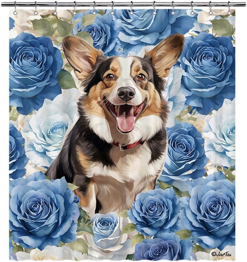 JaeTou Funny Dog in the Blue Flowers Decor Shower Curtains