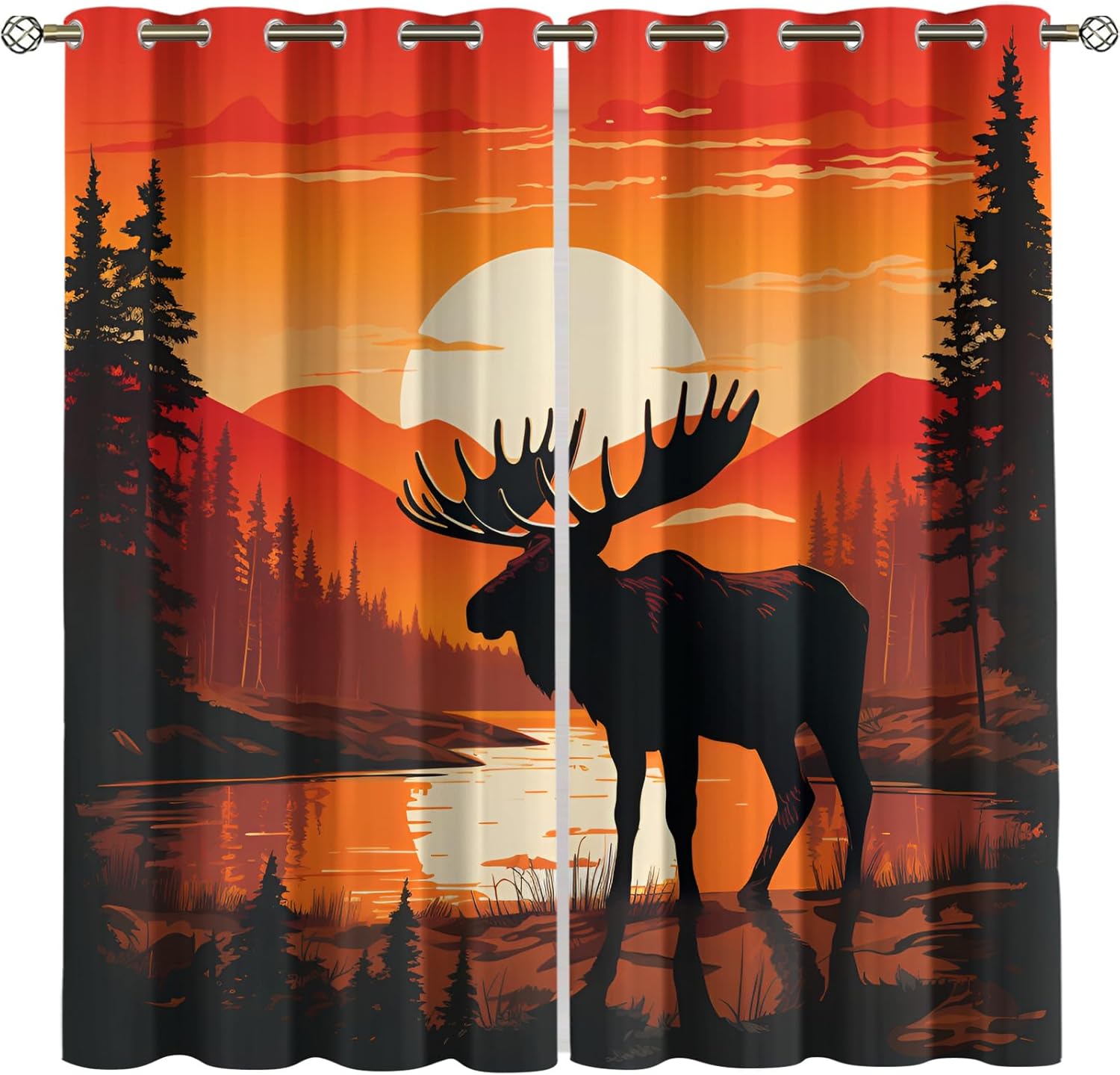 Blackout curtains are carefully crafted to improve your sleep, protect your privacy, and create a comfortable and quiet atmosphere in your home!Feature:➤ High quality and durable: Grommet curtains are made of microfiber fabric (260GSM), smooth and soft to the touch, adding a drapey feel to your windows, and the elegant design creates a cheerful atmosphere in your living space.➤ High-definition printing: Window drapes using high-definition digital printing technology and advanced printing and dyeing technology, the image color is lifelike, the picture is clear, the color is bright, and it does not fade.➤ Exquisite hemming: Experienced sewing workers use meticulous sewing to prevent loose threads and wrinkled hems, keeping the curtains flat, beautiful and more durable.➤ Effective noise reduction: Insulated curtains factory tested, blackout curtains can reduce outside noise, perfect for late sleepers and daytime naps.➤ Effective energy saving: Curtains for bedroom can provide indoor heating in winter, isolate outdoor heat in summer, balance room temperature, save energy costs, and meet the needs of most families.➤ Wide application: Decorative curtains can be hung in your bedroom, living room, dining room, kitchen, playroom, kids room, dormitory, patio door, and even office.Material: Premium Triple Weave Thermal Insulated Fabric.Size:21"W x 54"L x 2 / 0.86 lbPacking List:Blackout curtains with eyelets x2 (Curtain rod not included).Notice:1.The pattern is only on one side and the other side is white.2.There may be a slight difference in product size for hand measurement(1-2cm).Customer First:Either way, your happiness and enjoyment are the most important to us. If you have any questions or problems, contact us and we will reply within 24 hours and provide a satisfactory solution.
