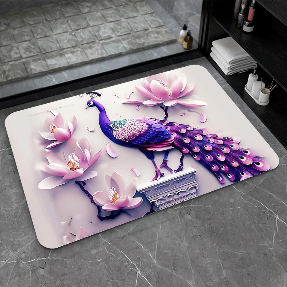 Features: [Beautiful pattern Design] Delicate pattern on a soft diatomaceous earth non-slip bath mat provides an artistical and relaxed feel to the bathroom.[Innovative Design]With the material of nano-level fiber, diatom mud latex mixture foam, as well as silicone rubber anti-skid foam, makes the rugs have upgraded absorption capacity. Meanwhile, it is no smell and no harm to health.this material is easy to clean and lasts for years.[Rubber Backing Technology] Super Water Absorbency Rug Mat Is Backed With Very Effective & Durable Rubber In Order To Prevent Skidding. The Rubber Backing Is Also Very Durable & Will Not Fall Off In The Washer Or Dryer. Prior To Placing The Rug On The Floor, Please Ensure The Floor Underneath The Rug Is Clean And Dry. Do Not Place The Rug On Wet Floors.[Multifunction] Apart from using it in the bathroom, it can also be used in your bedrooms, kid's room, laundry rooms, restaurant, hotel, banquet, wedding party as a doormat. Perfect bathroom gift for friends and family! [Keep Your dog and cat Area in Safe and Hygine]Whether you were annoyed by the wet residue or footprint on the floor during your cute doggy or kitten feeding time? You will love the fast drying, stain-resistant, and super absorbent rugs.Tips:Do not place it on sharp objects.