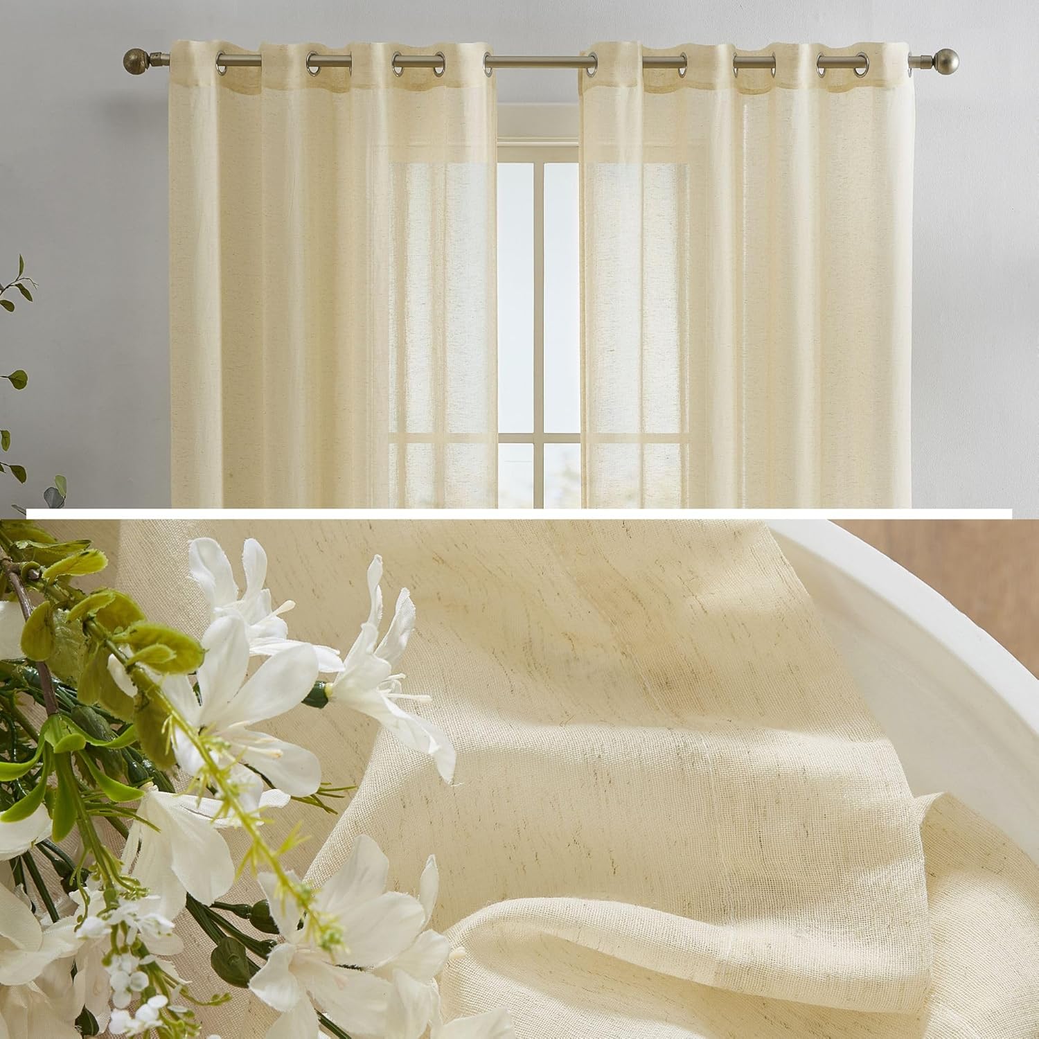 HLC.ME Sierra Burlap Flax Linen Semi Sheer Privacy Sun Light Filtering Transparent Window Grommet Long Thick Curtains Drapery Panels for Bedroom & Living Room, 2 Panels (54 W x 96 L, Natural Linen)