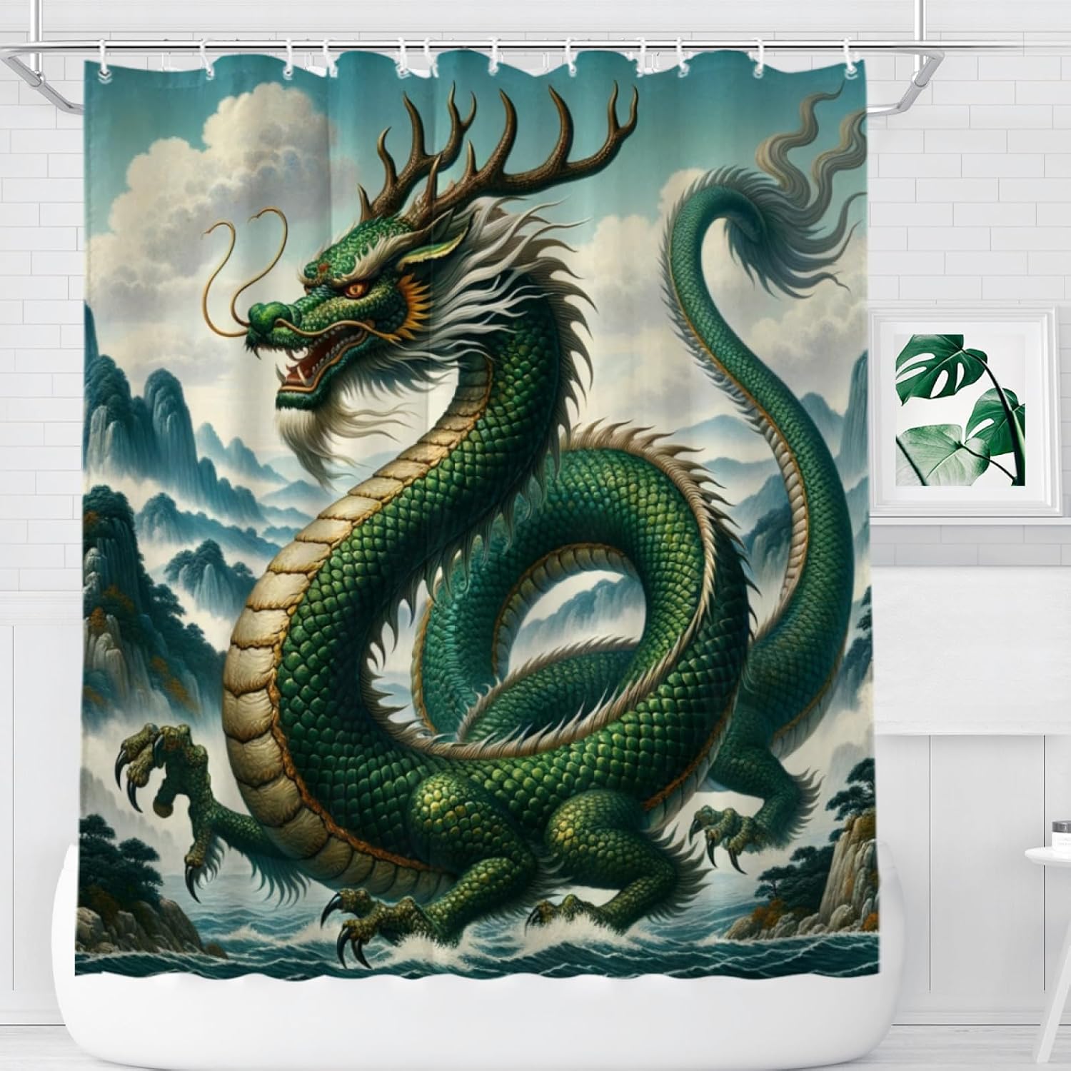 Experience the perfect blend of style and functionality with our premium shower curtain.Crafted from soft, durable polyester, our shower curtain boasts a waterproof effect that keeps your bathroom looking clean and fresh for an extended period.Utilizing advanced HD digital printing technology, the vibrant patterns on our bathroom shower curtain are clear and natural. Rest assured, the use of environmentally friendly ink ensures no odor or harm to your health. Choose from a variety of unique patterns to create a wonderful atmosphere and enhance your overall bathroom experience.Hanging this cute fabric shower curtain is a breeze with the included set of 12 sturdy hooks. For maintenance, simply wash it in cold water by hand or machine—avoid bleach—and enjoy quick drying for added convenience.Each package includes:1 x Unique Shower Curtain12 x Strong HooksPlease note:Allow for slight color differences due to lighting and screen effects.Manual measurements may result in slight variations in product size.