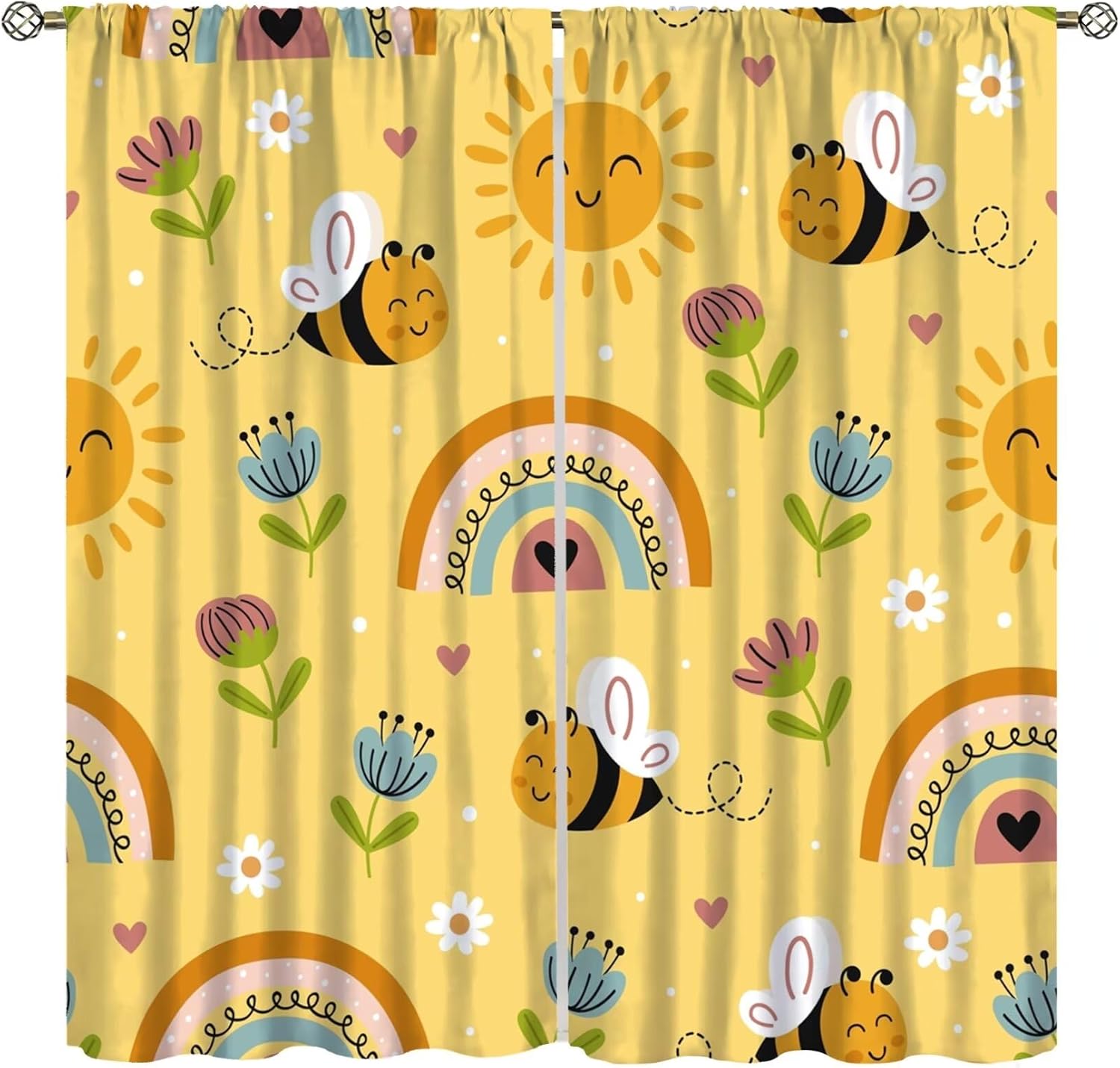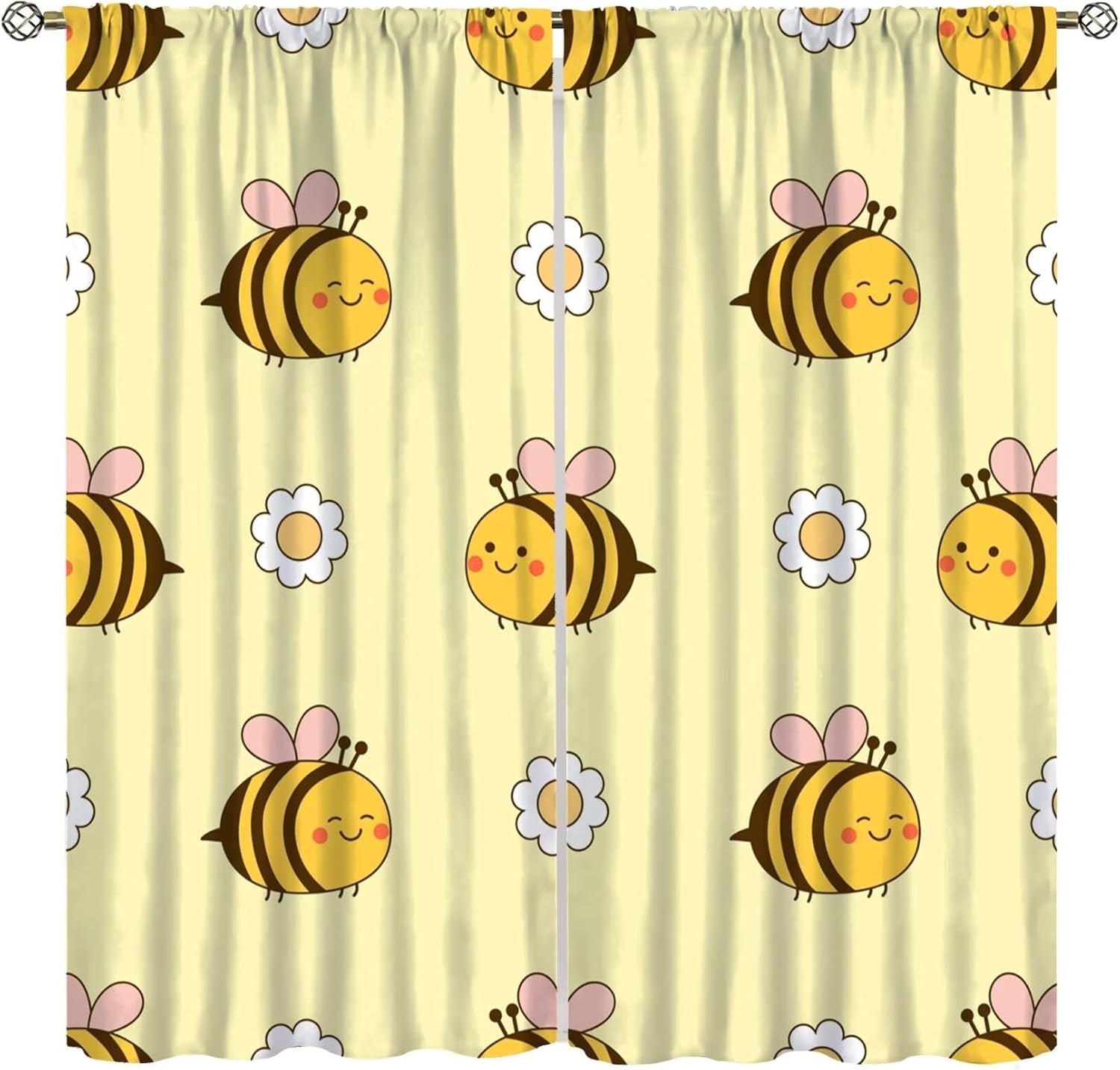 Honey Bee Curtains, Fluttering Bees Daisy Honey Pollen Spring Animal Print,for Living Room Kitchen Cafe Window Drapes Set 2 Panels,42x45 Inches