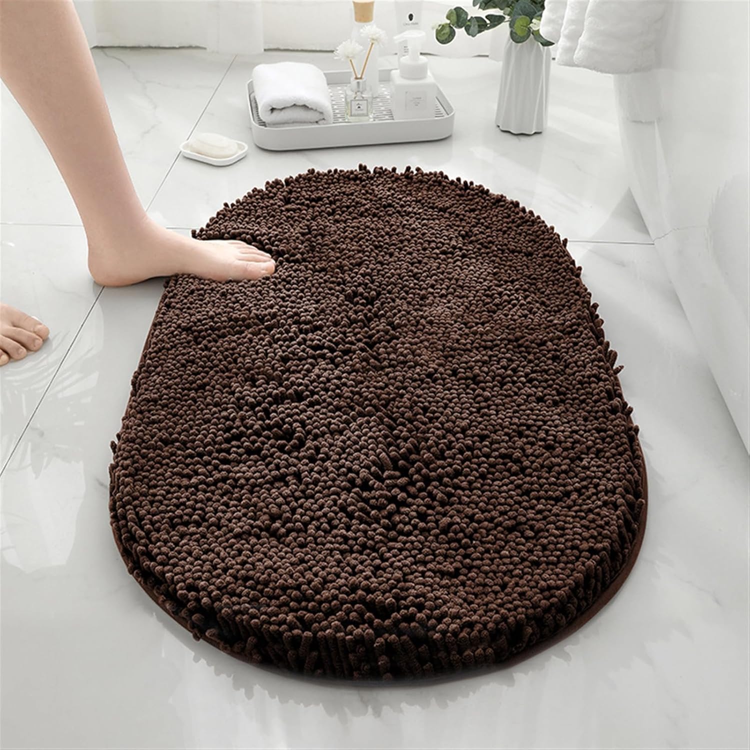 Reyox Chenille Oval Bathroom Rug, Non Slip Water Absorbent Bath Mat, Washable Bath Rugs for Bathroom Floor Bathtub